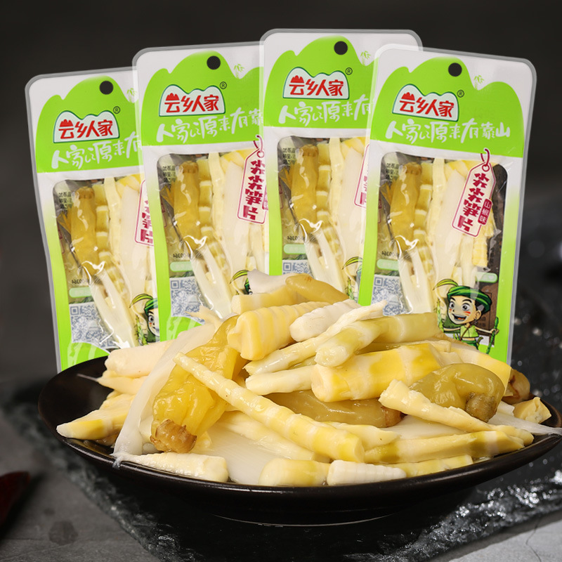 雲郷の人の山椒の筍の先の稲の切れは袋を開けてインスタント食品のピーマンの脆い筍の酸っぱい小さい包装の間食の下で食事をします。