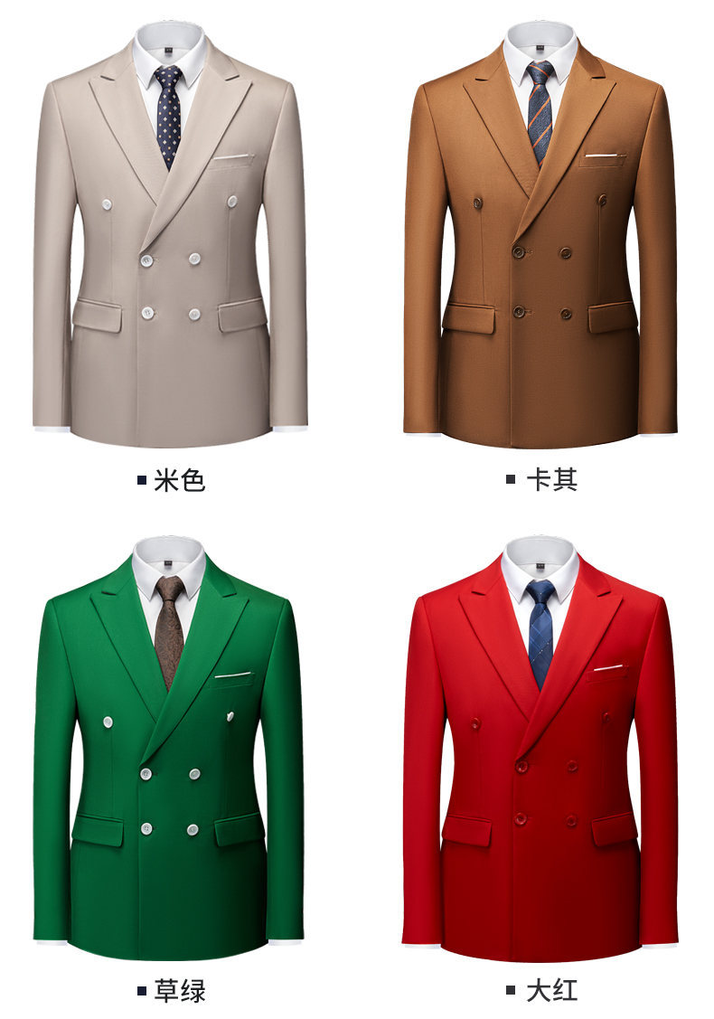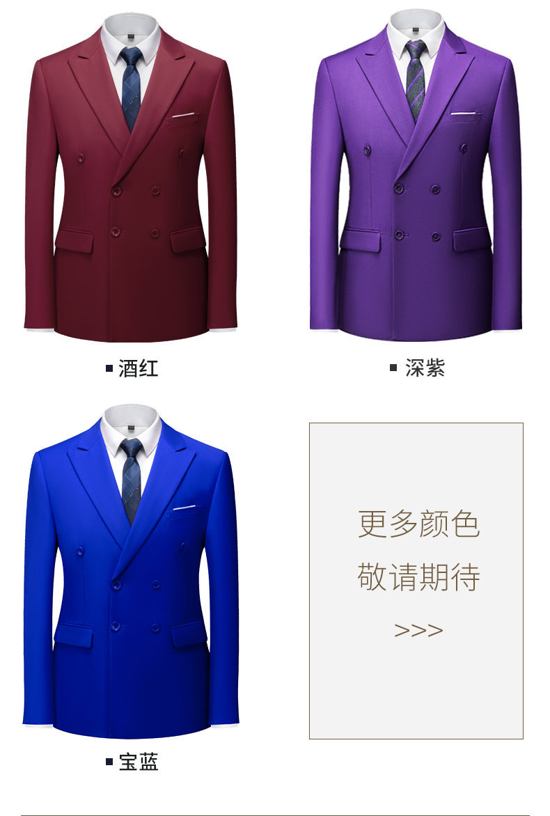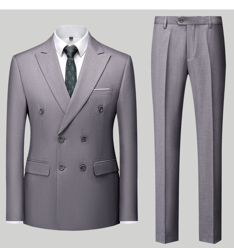 外贸跨境商务免烫双排金扣西装两件套潮男纯色简约修身痞帅西服潮