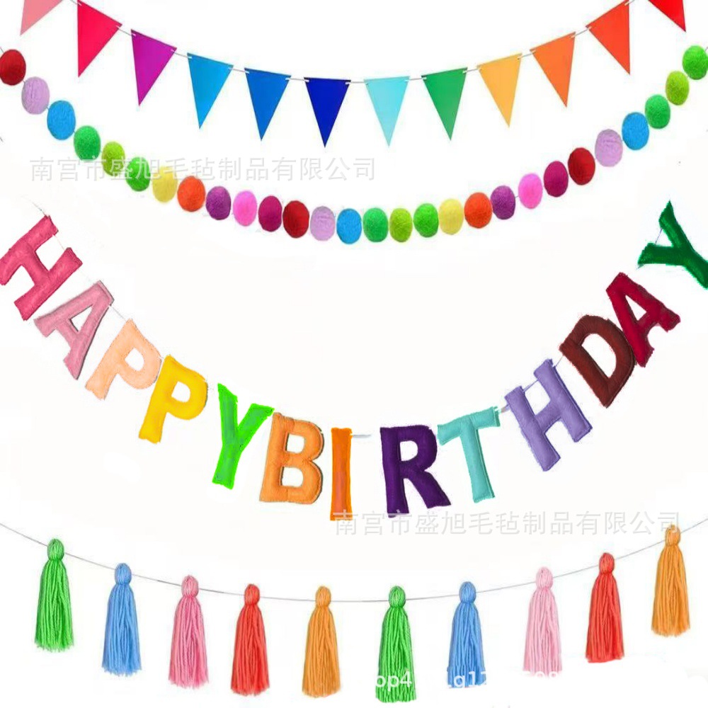 フェルト綿充填カラフルなレターフラグハッピーバースデーパーティーデコレーションフェルトフラッグフラワーバナー