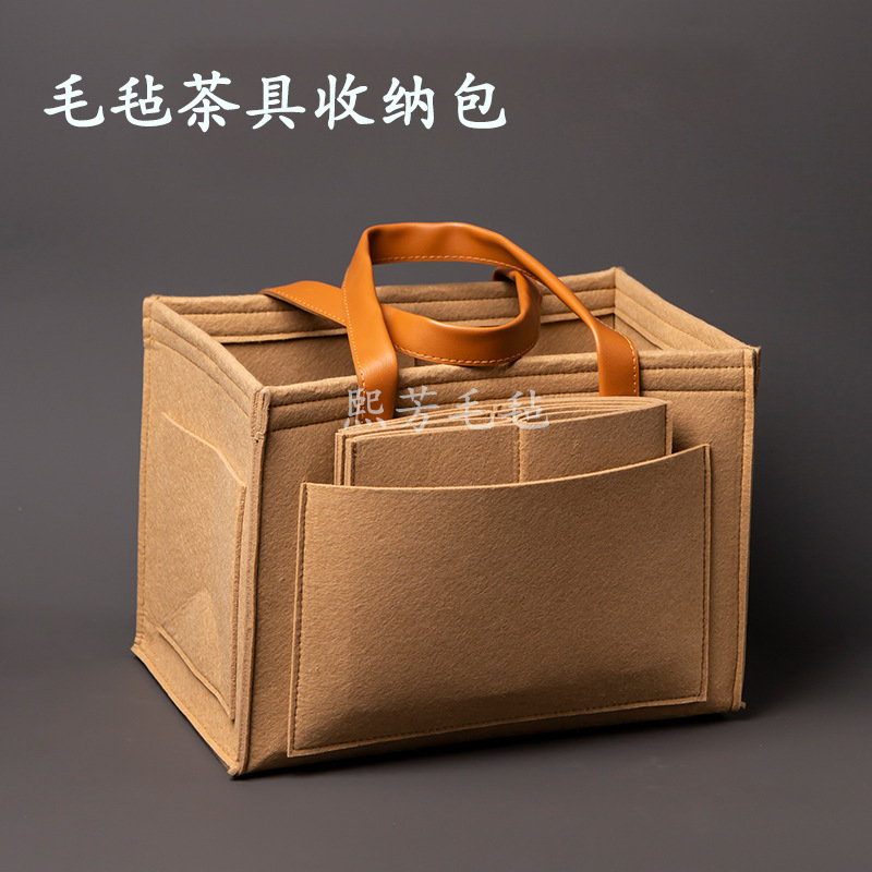 手持ちフェルト茶道具収納バッグ茶道プレゼント収納袋アウトドア旅行携帯式ティーカップティーポット収納バッグ