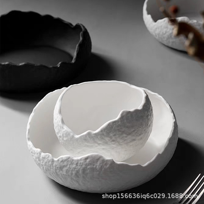 岩紋陶磁器皿家庭用深皿料理皿創意ホテルレストラン食器高級感白皿スープ皿