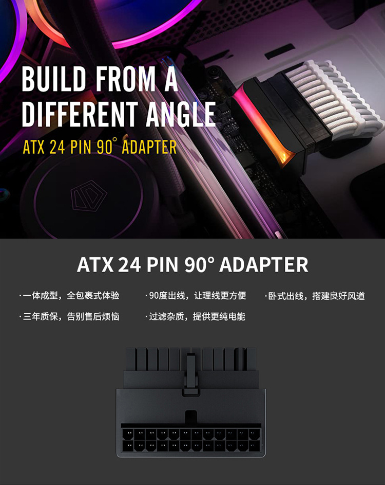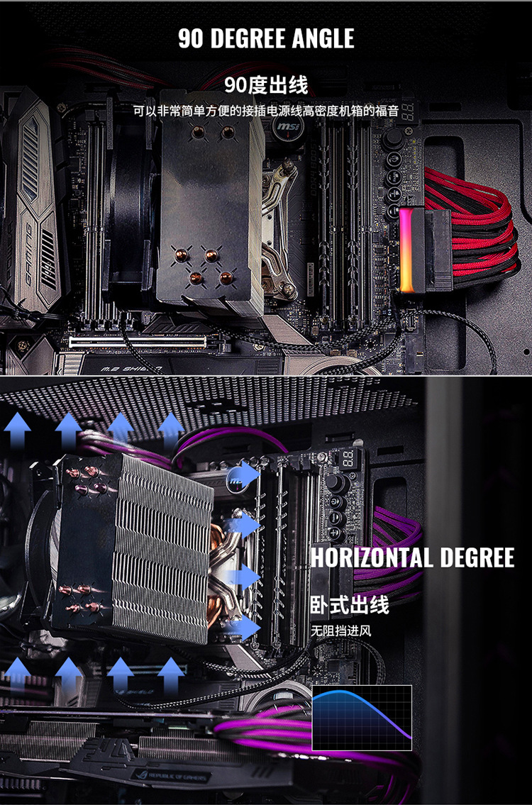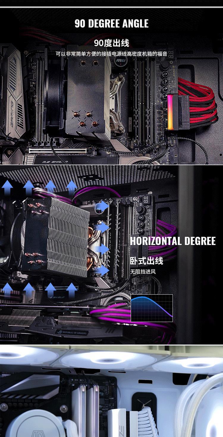 显卡电源180度转向接头6P8P转弯器机箱走线美化解决显卡顶盖板+新