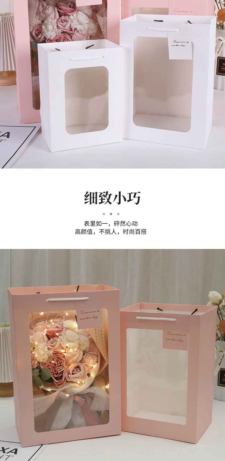ハイエンドウィンドウギフトバッグ誕生日トートバッグ花紙袋透明ウィンドウギフトバッグバレンタインデー包装袋