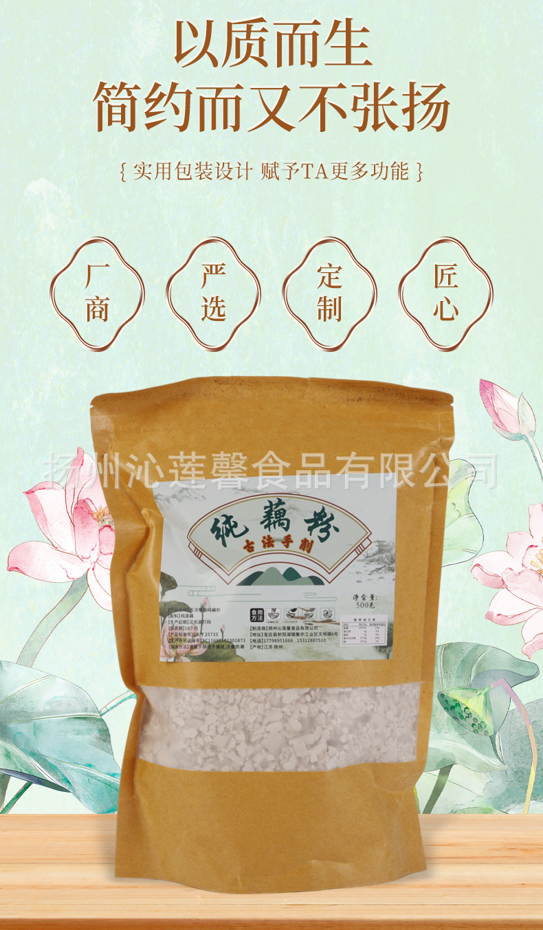 メーカー卸売りの砂糖のない宝は手で古法の純粋なレンコンの粉を削って食品級の純粋な手で食事を代行して500グラムばら積みにするべきです。