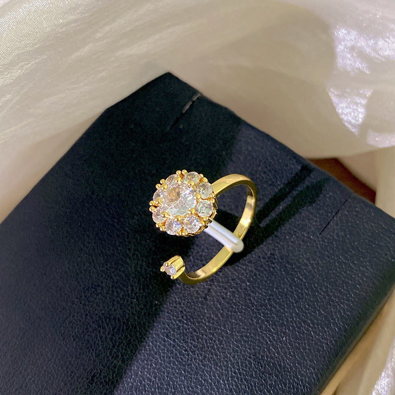真金电镀保色时来运转可旋转戒指女镶嵌锆石高品质感手饰跨境热销