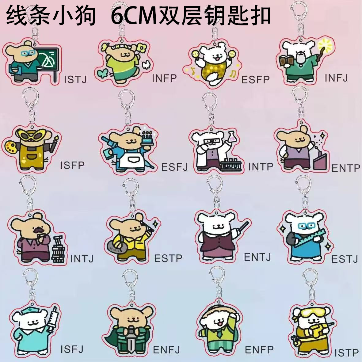 漫画の線の子犬のキーはMBTI人格のマルジスの2層のアクリルのかばんの掛け物を掛けて卸売りして注文します。