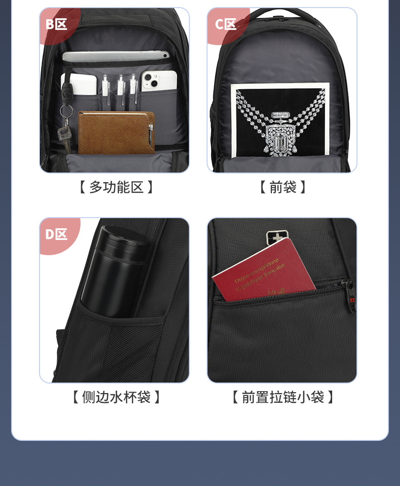 卸売スイスバックパックコンピュータバッグトロリーバックパックメンズ大容量ドラッグ荷物スーツケース中学生スクールバッグ