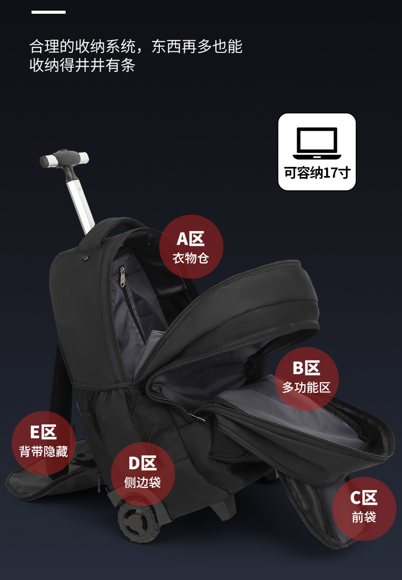 工場直販撥水トロリーバックパックユニバーサルホイールビジネストラベルトロリーバッグメンズ多機能トロリーバッグ