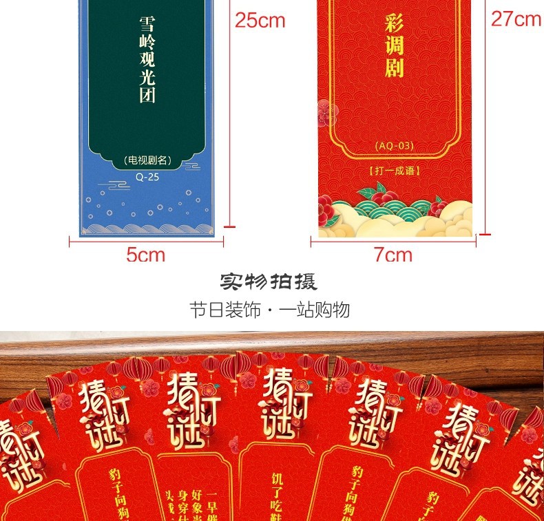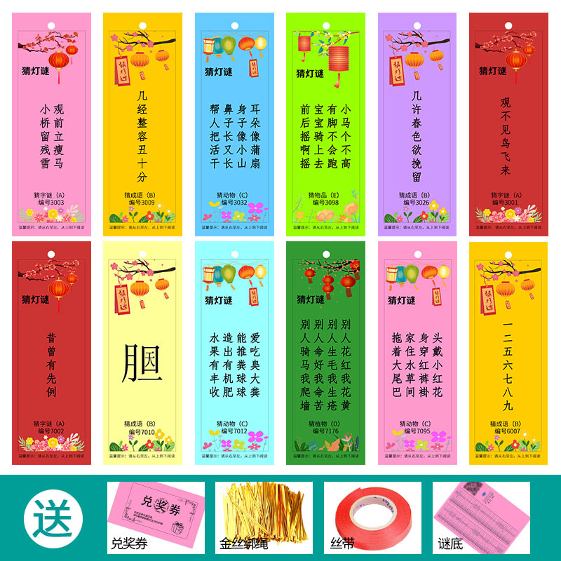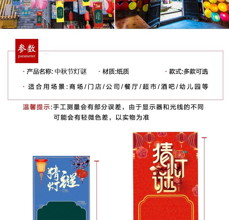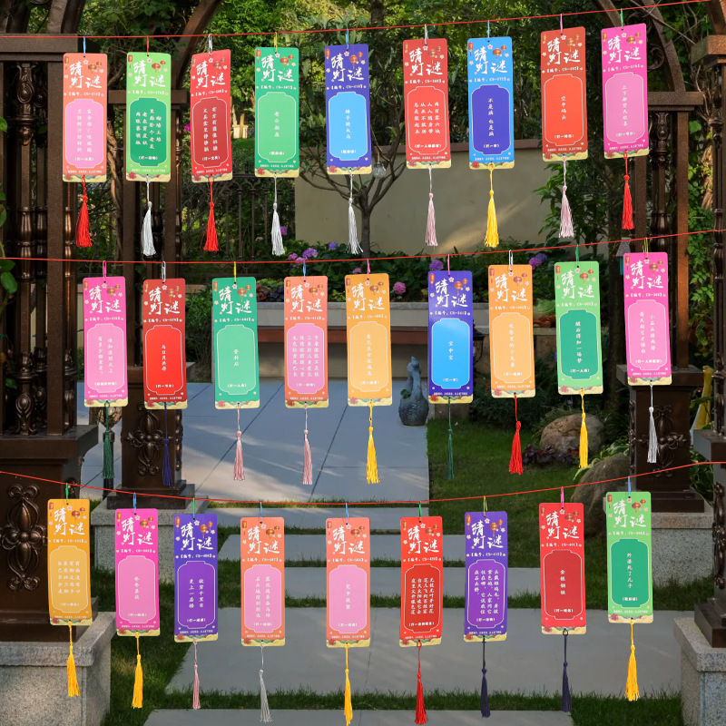 新款猜灯谜卡片中秋节国庆装饰纸灯笼灯谜条挂牌游园猜字谜语吊卡