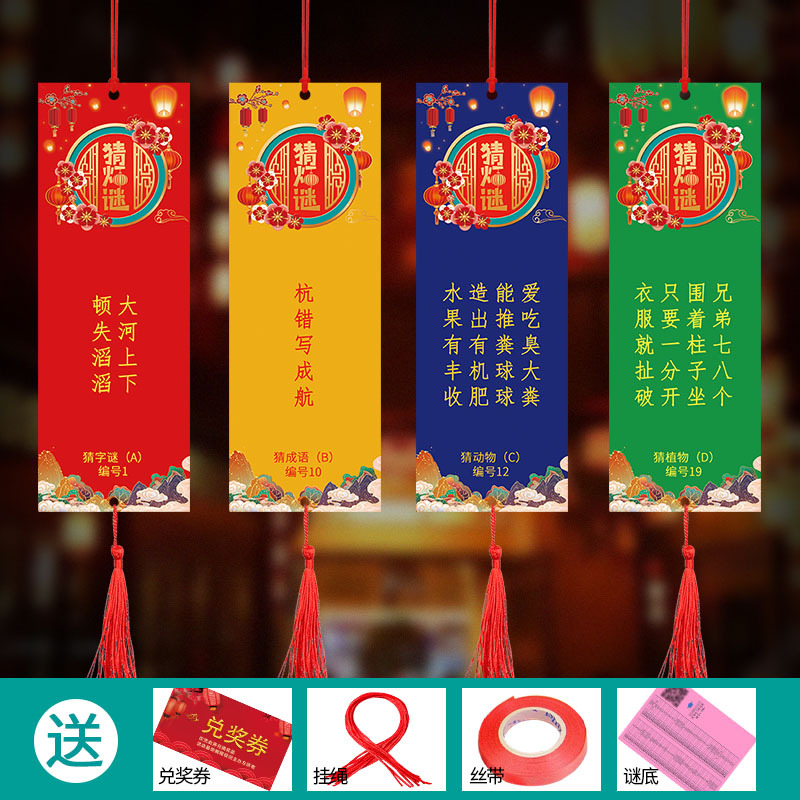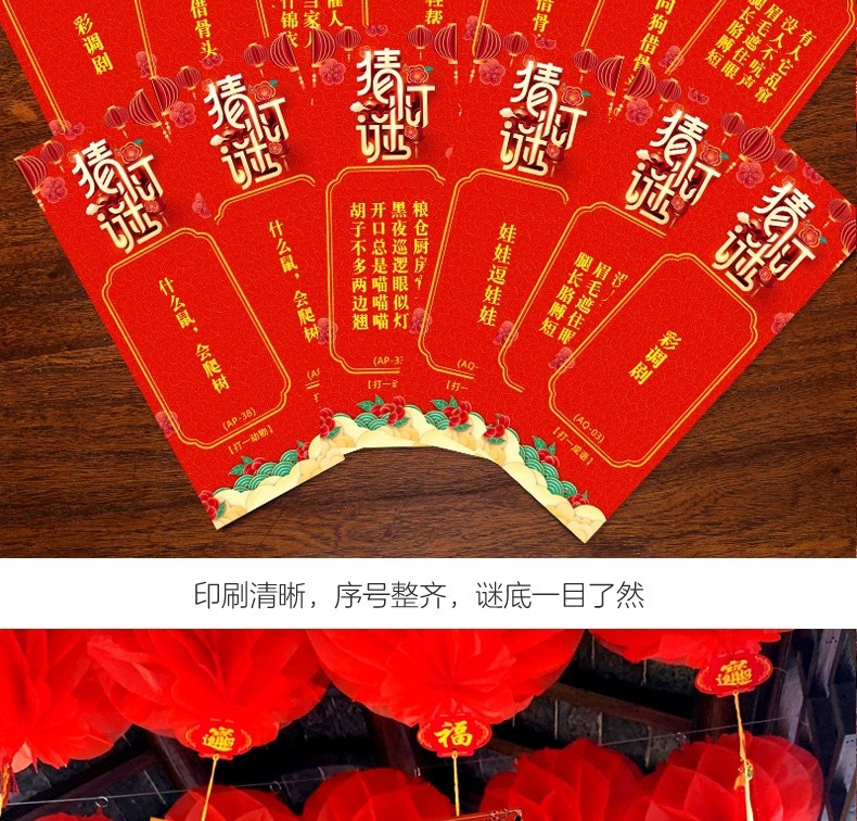 新年元宵節の灯籠謎、文字謎カード、端午節、春節のお祭り、灯籠謎カード、紙製ランタン、紙製吊り飾り