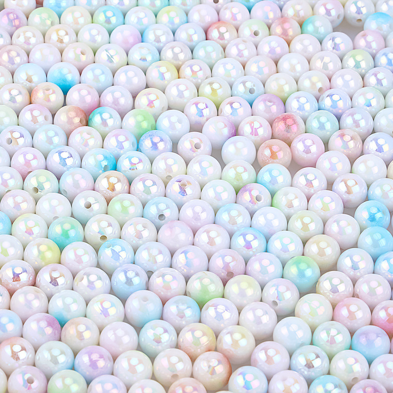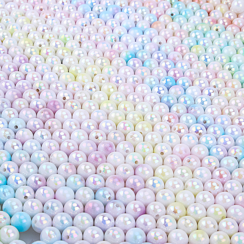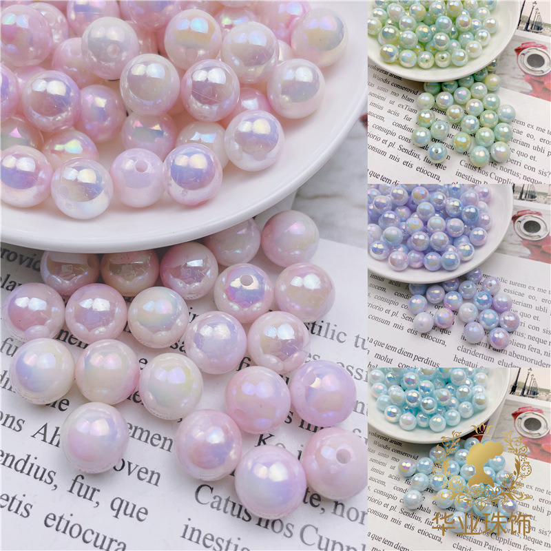 アクリルオーロラカラーグラデーションab二色模造真珠ボール直孔散珠diy携帯チェーンアクセサリー部品