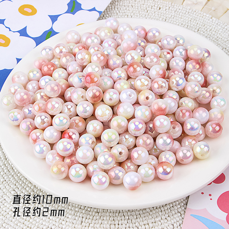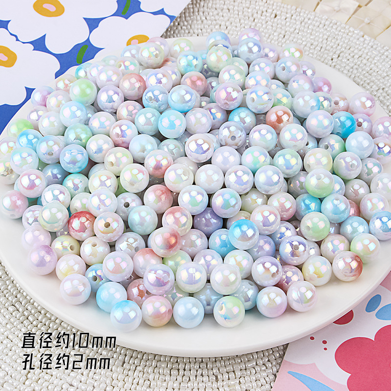 10mm人魚姫オーロラ幻珠アクリル直孔円散珠diy材料部品車掛ビーズ材料