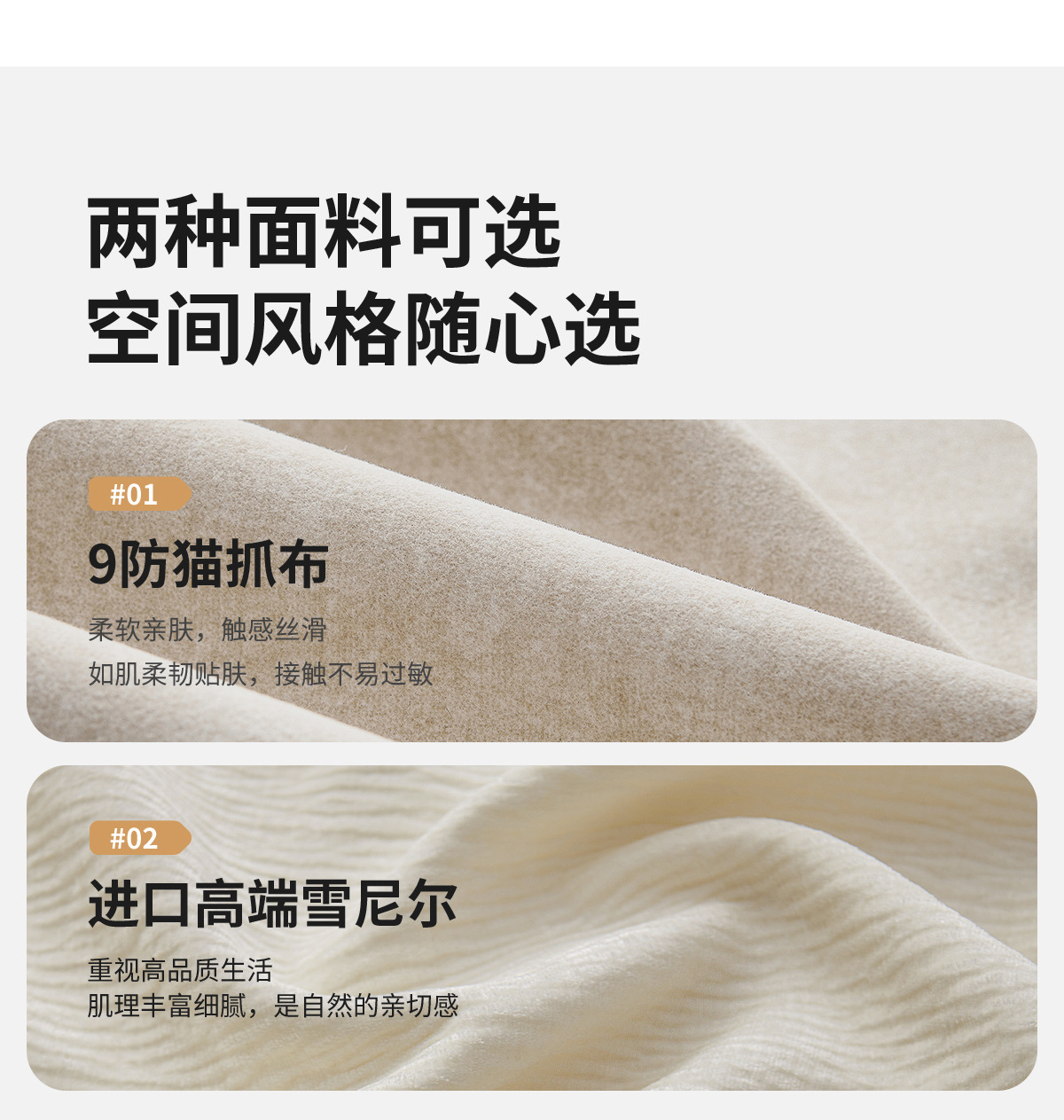 【取り外して洗える布カバー】【9つの抗菌猫爪布】防ダニ・抗菌・防水・耐摩耗【デフォルト アーモンドホワイト 1108-1】,【取り外し可能で洗える布カバー】【輸入高級シェニールベルベット】天然綿と麻、通気性があり肌に優しい【デフォルトクリームホワイトTY74-1】