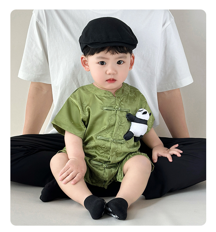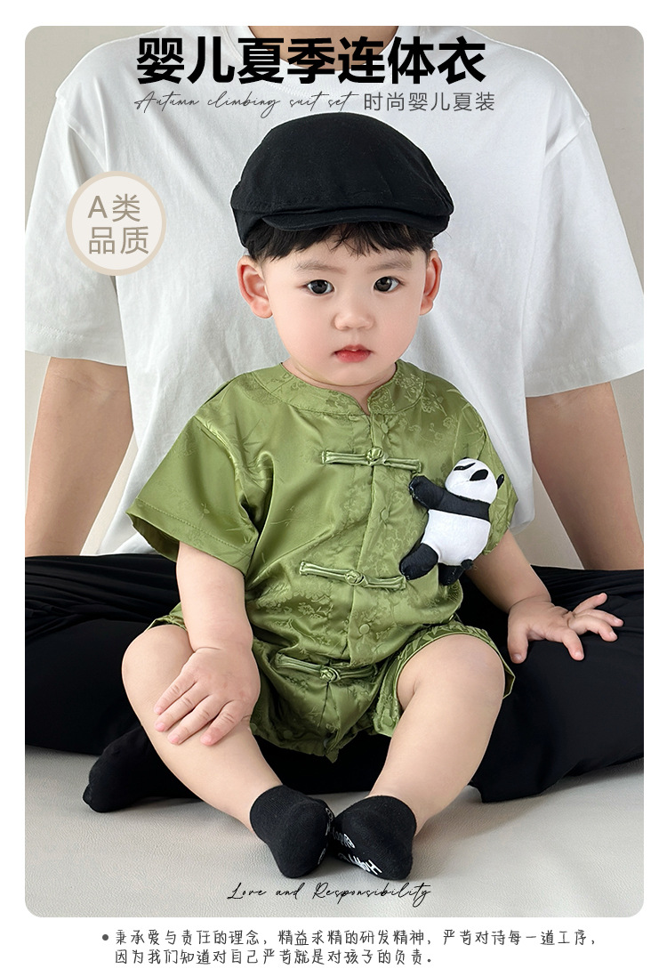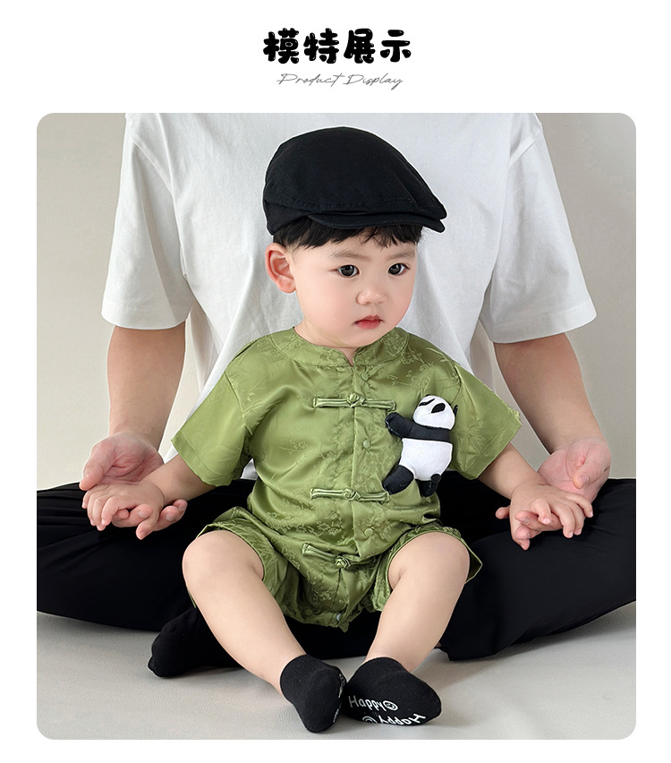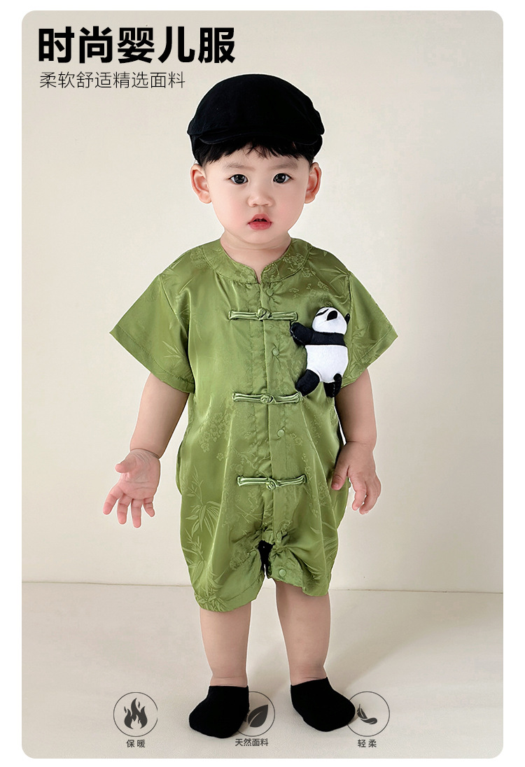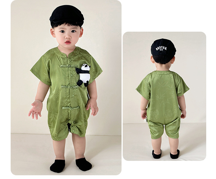 新しいスタートポイント服、ベビー服、夏服、新生児男の子満月這う服、中国風唐スーツジャンプスーツ