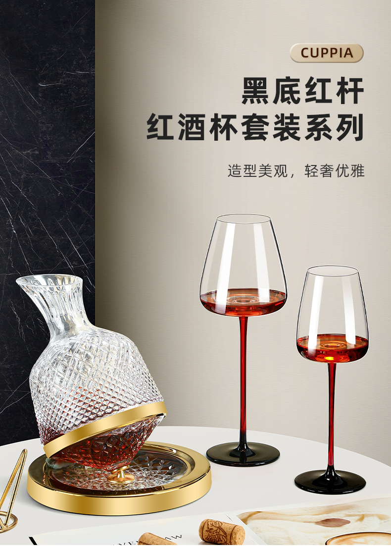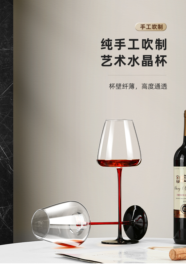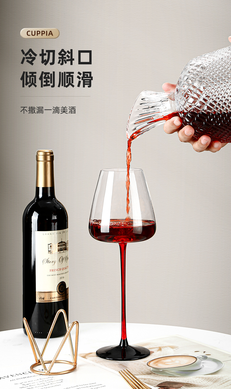 軽くて豪華な水晶の勃開地のワイングラスの赤いまっすぐな黒の底の凹みの杯のボルドーのシャンパンの杯のブドウの高い足の杯の杯