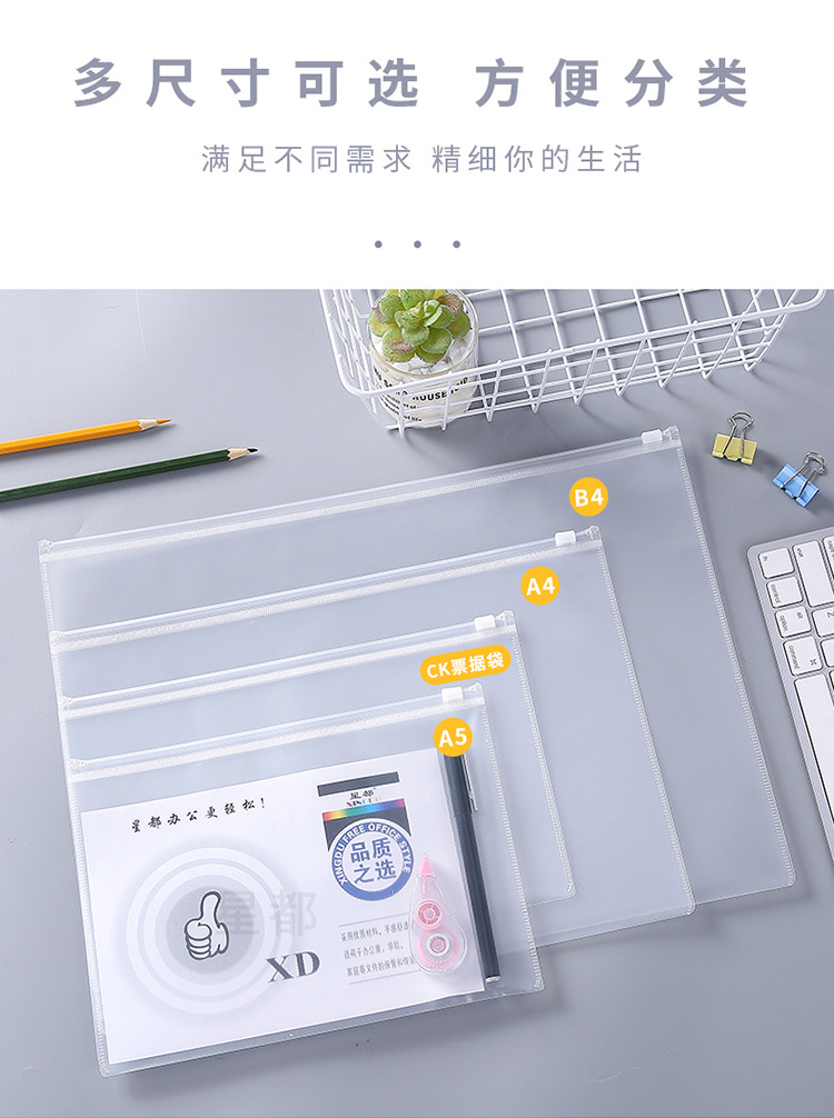 A4書類袋透明フロスト防水資料ジップ袋試験ファスナー収納袋b4/a5/手形ペン袋