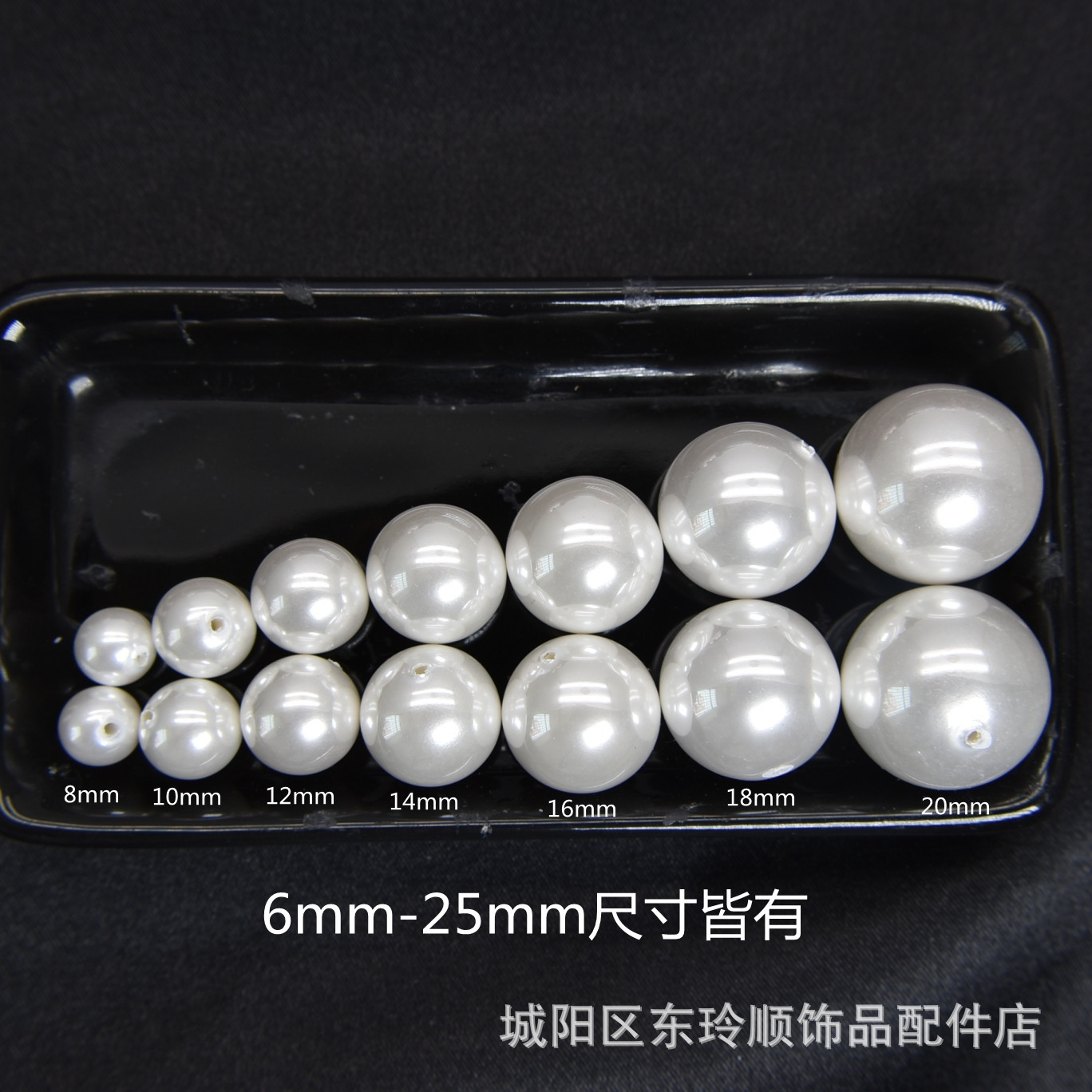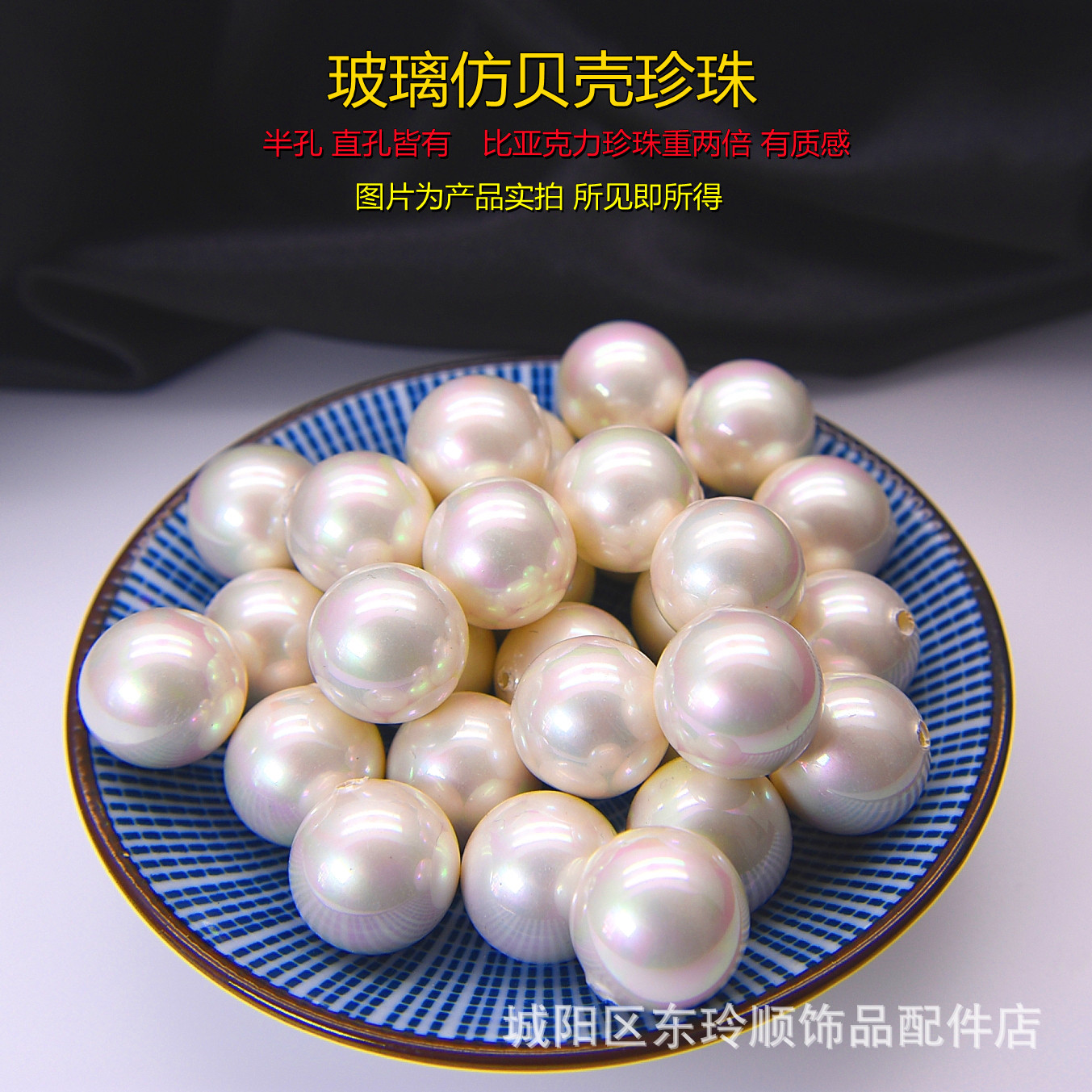 単孔直孔散珠卸売り五色ガラス模造貝殻珠diy白色貝珠半製品ネックレス部品