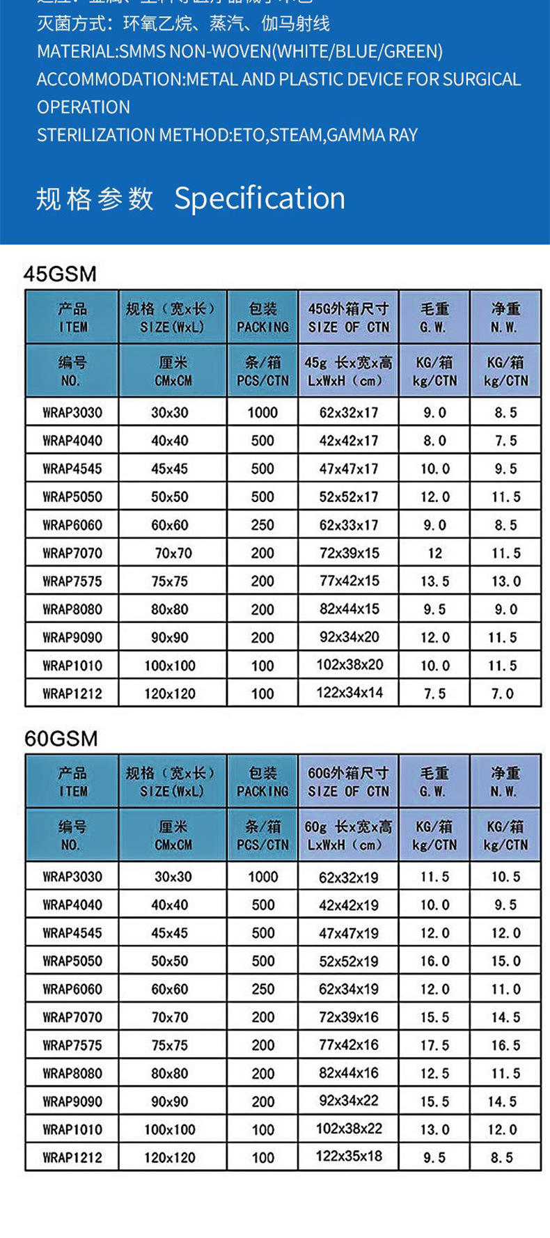 一次性医用包布供应室用单层SMS无纺布加厚无菌手术器械包裹布