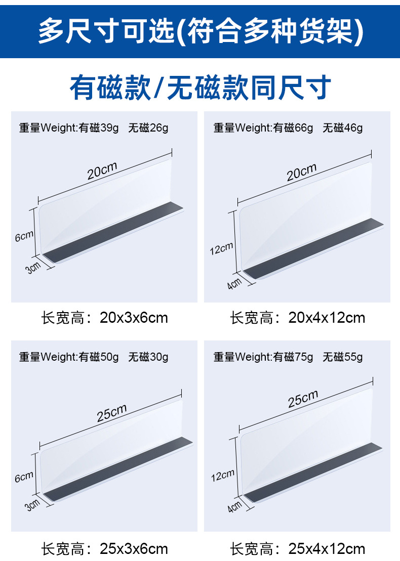 商品仕切りスーパー棚仕切り板磁気コンビニ貨物コンテナ棚板透明仕切り条プラスチックバッフル