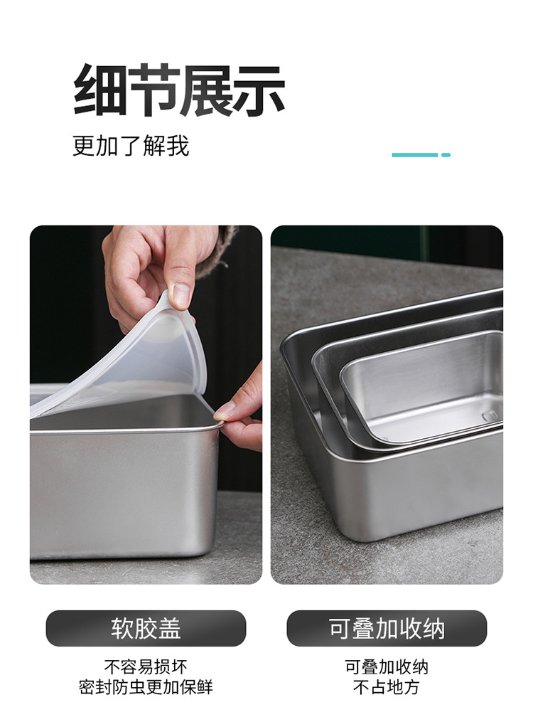 304ステンレス鮮度保持ボックス食品級密封おかずボックス冷蔵庫食品鮮度保持冷凍大容量収納ボックス
