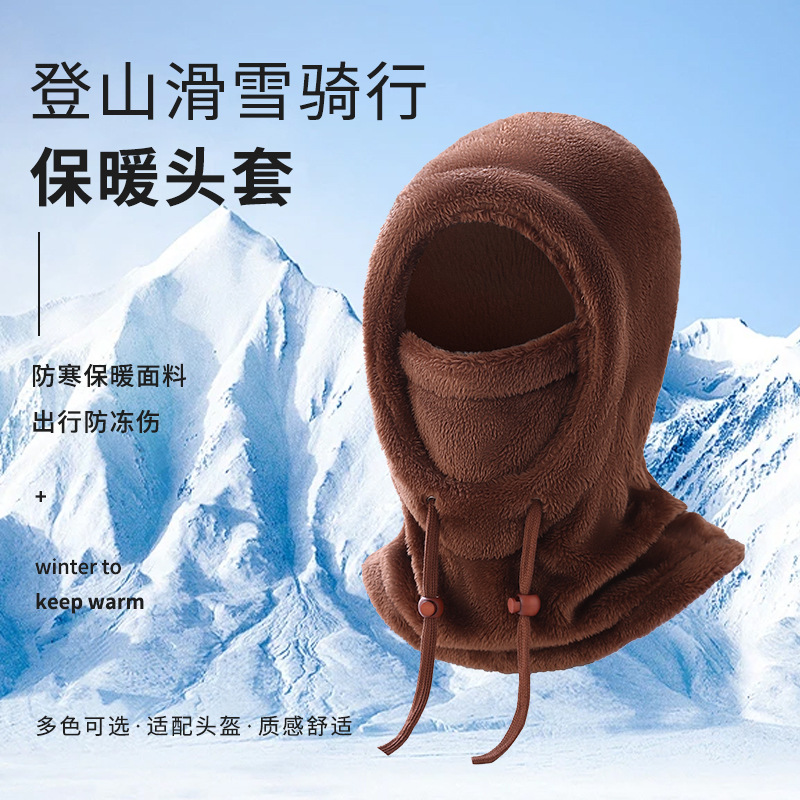 秋冬新款加绒加厚套头帽护耳防风棉帽户外骑行保暖围脖口罩一体帽