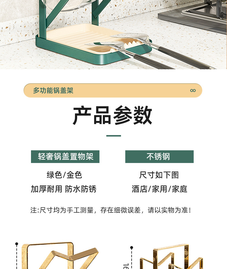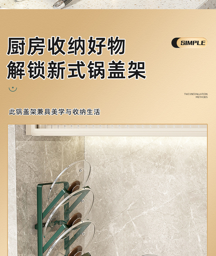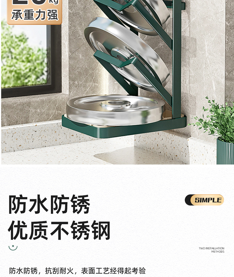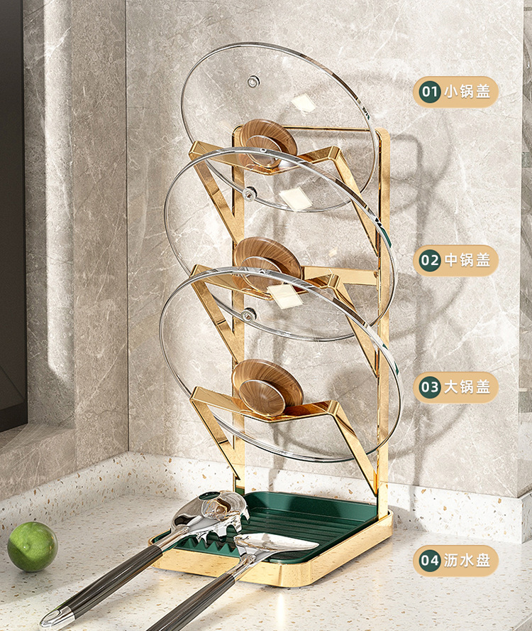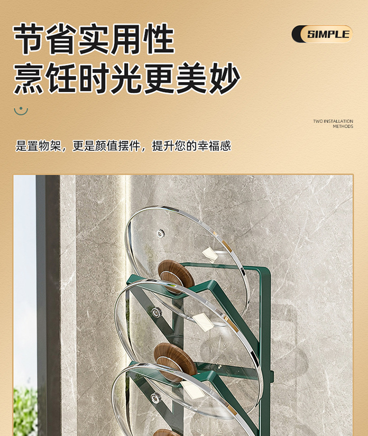 階数 (仕様) 墨緑 (単層床面鍋蓋架),墨緑 (二重テーブル鍋蓋棚),墨緑 (三層壁掛け鍋蓋架),ゴールド (単層床面なべ蓋棚),ゴールド (二重テーブルポット蓋ラック),ゴールド (3層壁掛け鍋蓋ラック)