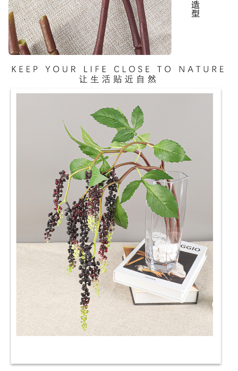 擬似ゴム管小枝5葉文竹禅意古風装飾雲片松刺シダ植毛文竹