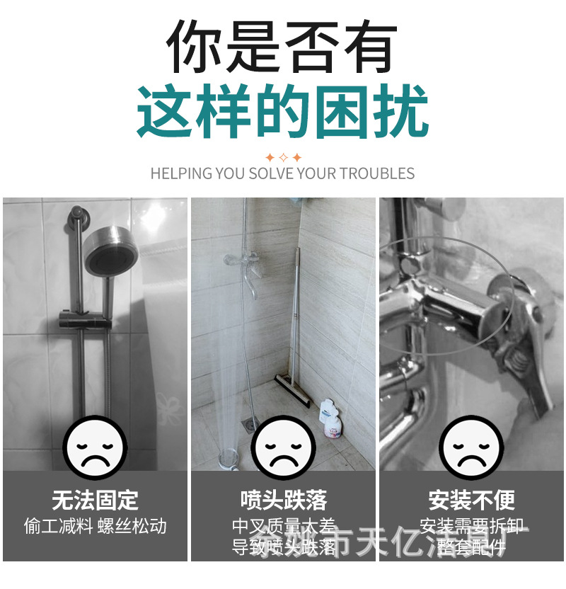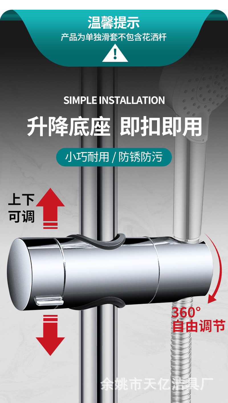 外贸跨境滑套免打孔花洒支架可拆卸升降杆中叉沐浴喷头固定座通用
