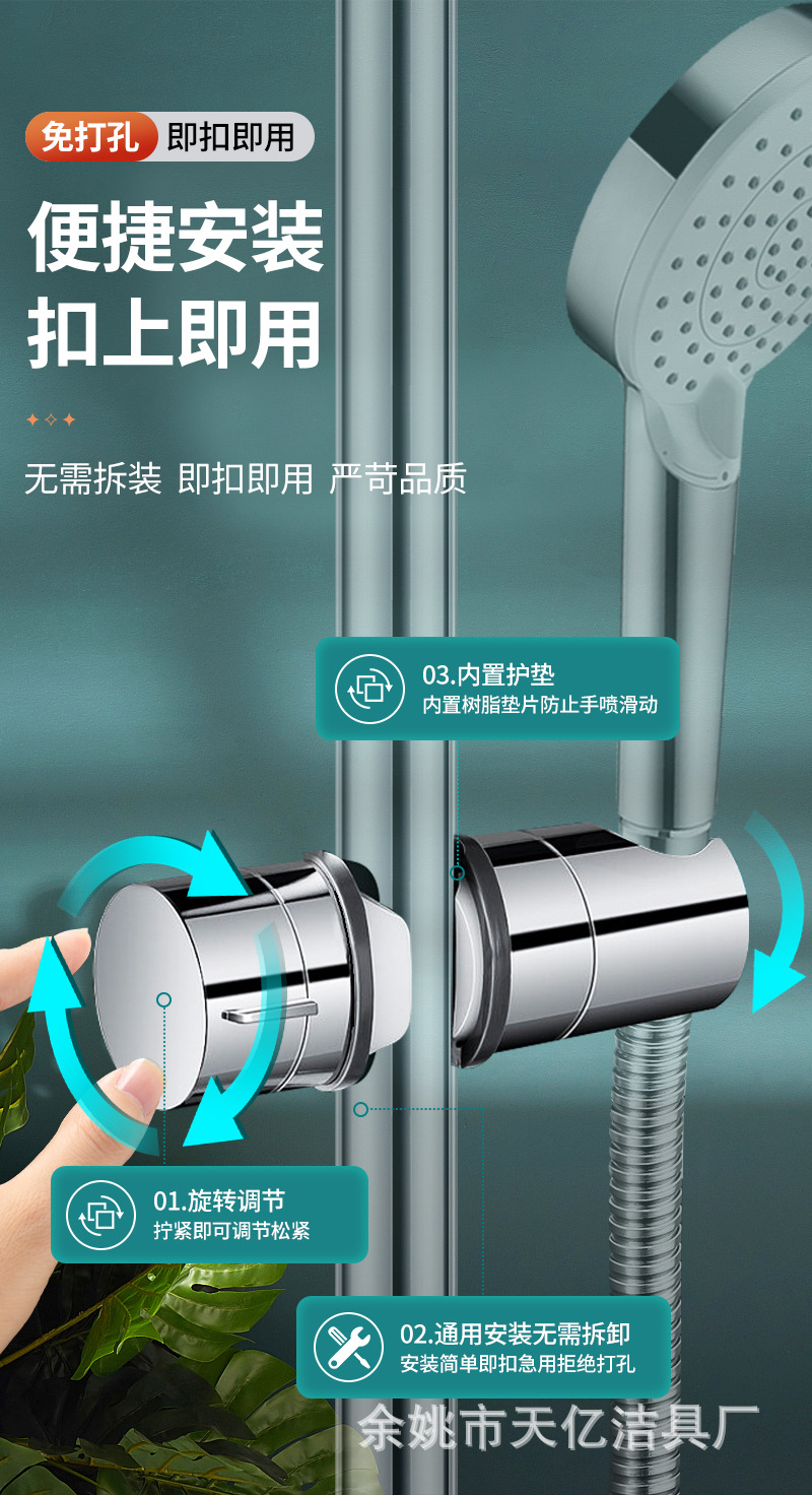 穴を開けないシャワースタンド昇降レバースライドセットノズルクリップ固定座ボタン共通浴室シャワーレバー部品