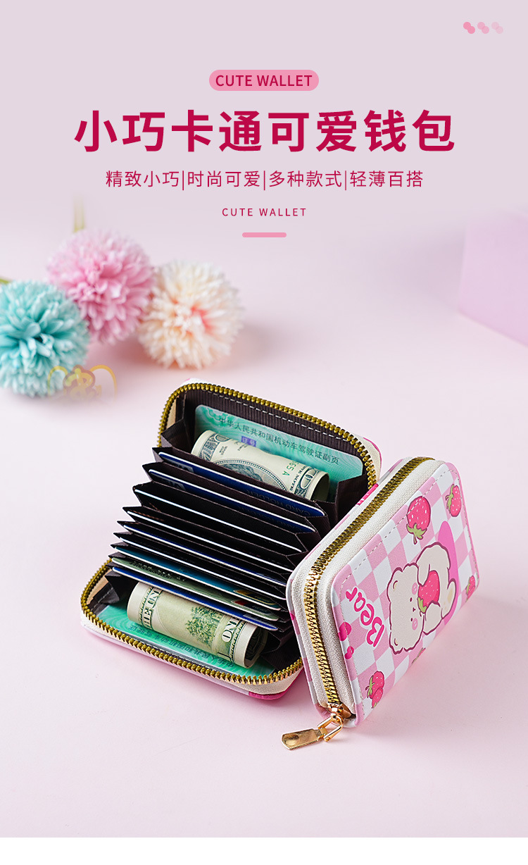 新品カートゥーンレディースオルガンカードケースカバン可爱い和风ミニ小銭入れ大容量マルチカセットファスナー财布