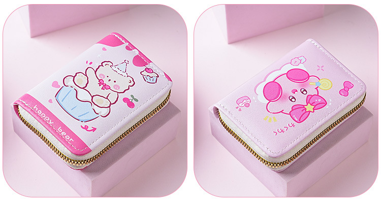 ファッショナブルでかわいい漫画プリントマルチカードスロットオルガン銀行カードバッグID収納バッグショートジッパー小さな小銭入れ