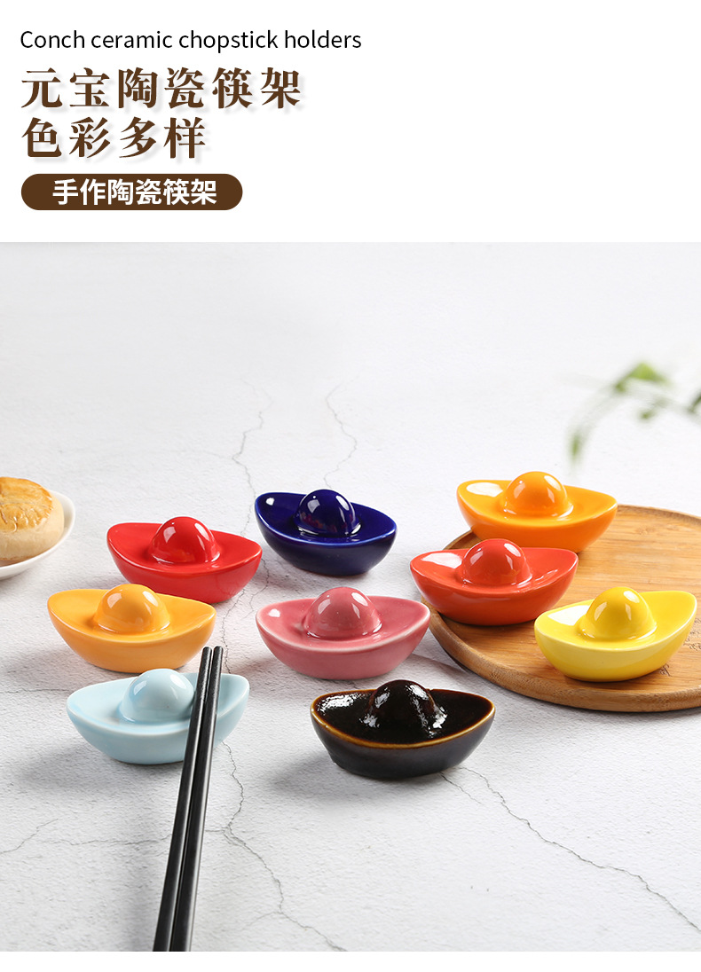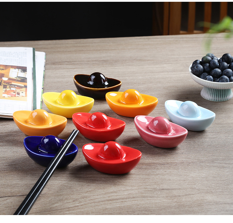 日本式創意家庭用陶磁器元宝箸托日用色釉ホテル食器置物業務用箸托卸売り