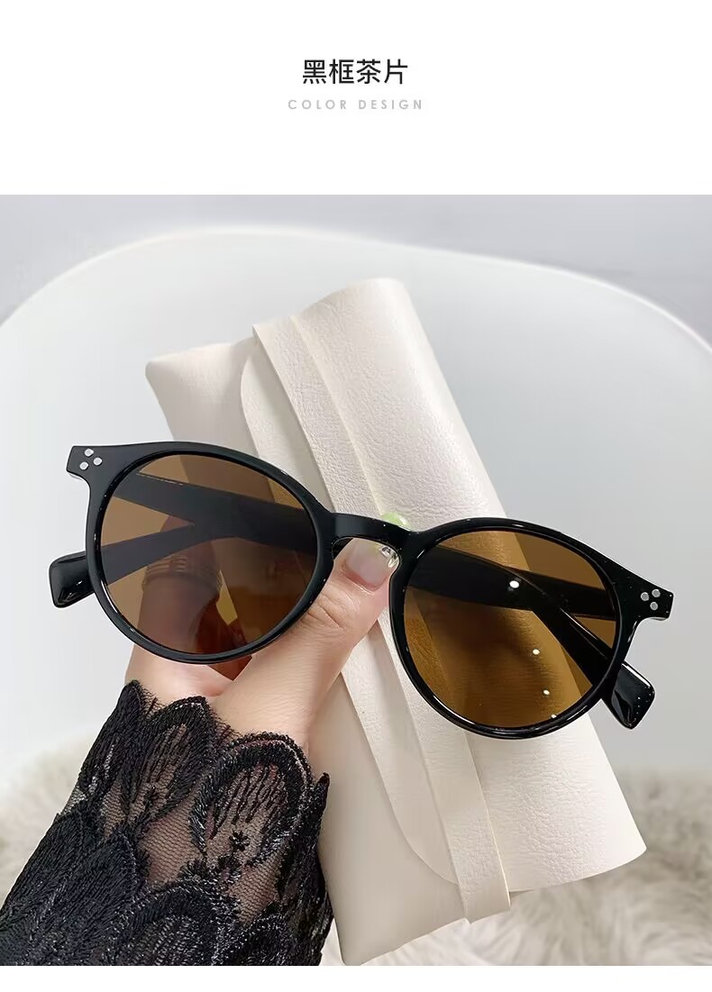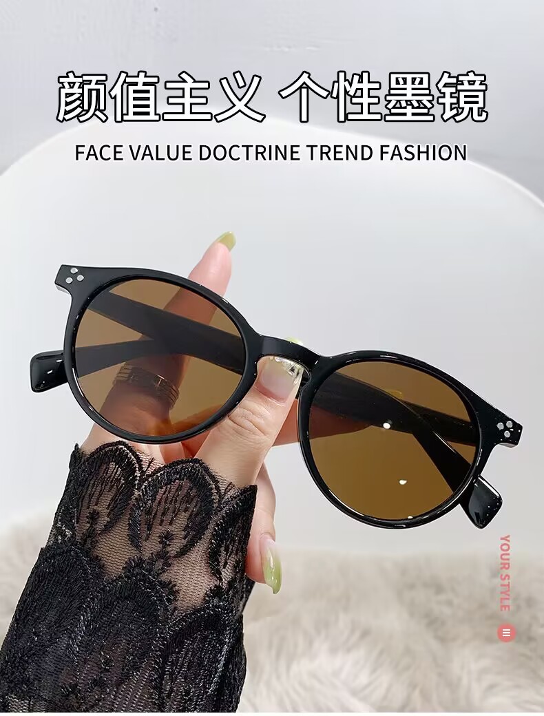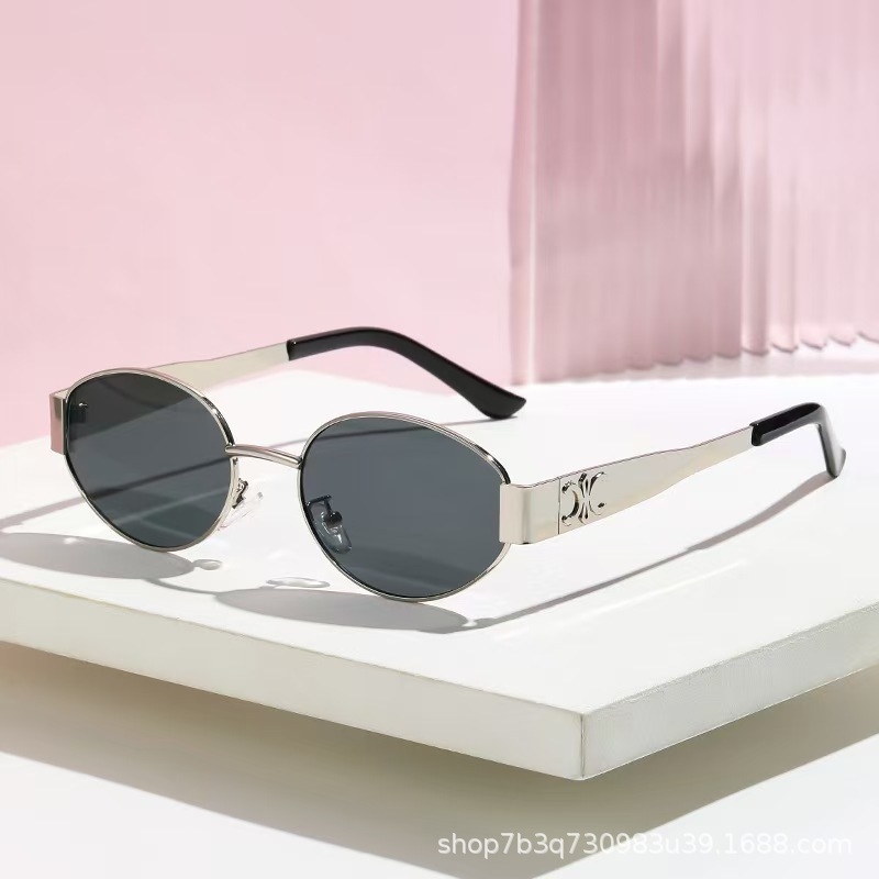 复古风椭圆墨镜潮流金属男女同款太阳镜时尚高颜值遮阳镜眼镜批发