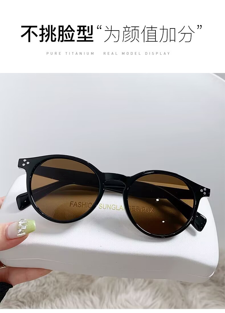 2023新型サングラス夏の高級感サングラス紫外線防止金属脚女性の丸い顔が痩せて見える日よけ鏡