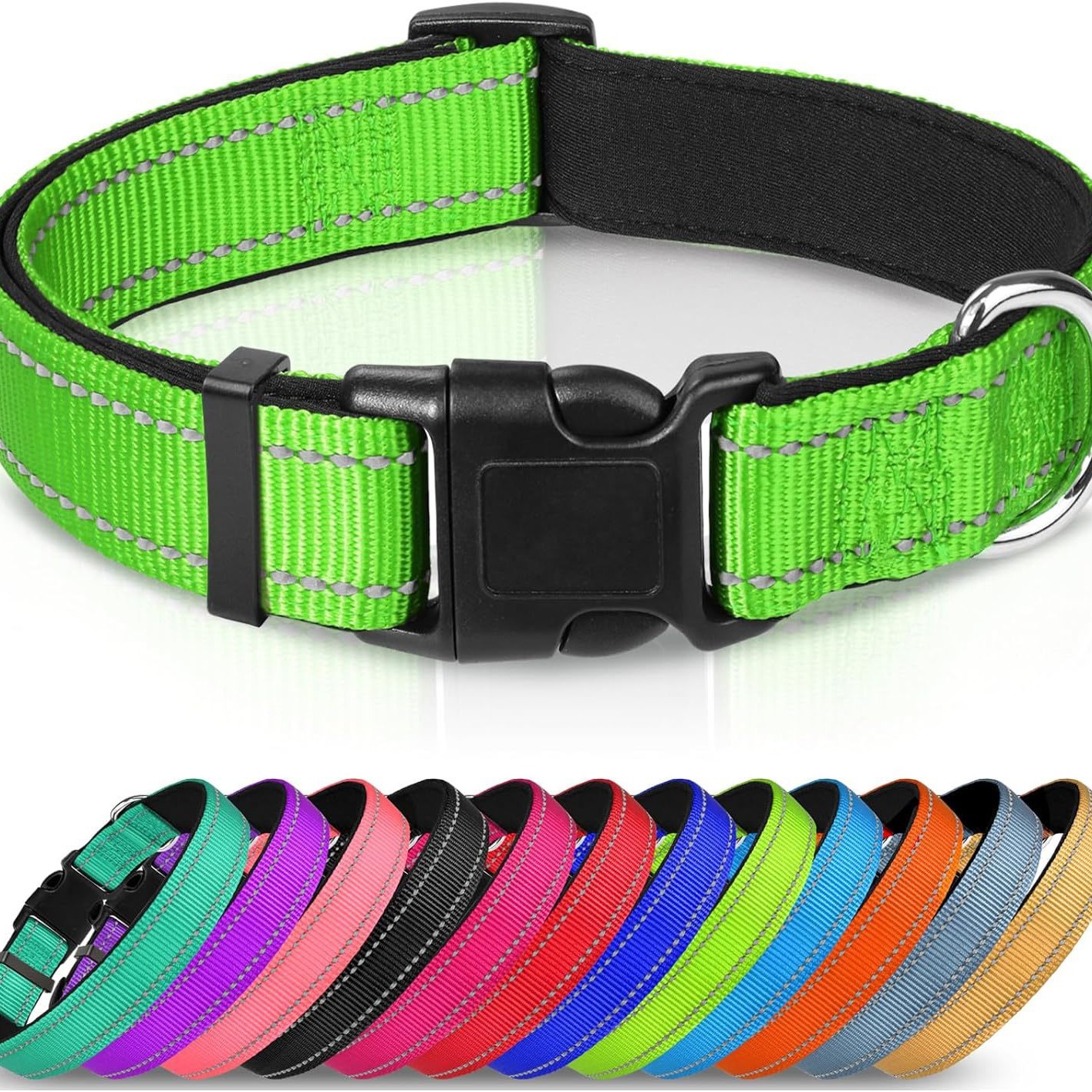 跨境宠物用品反光狗狗项圈潜水料可调节遛狗圈中小狗狗多色脖圈