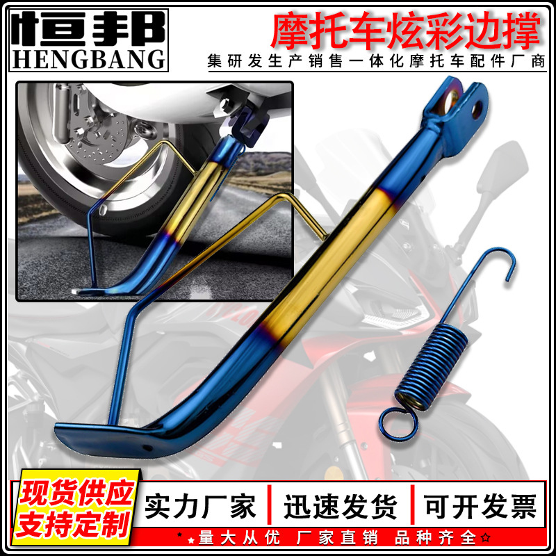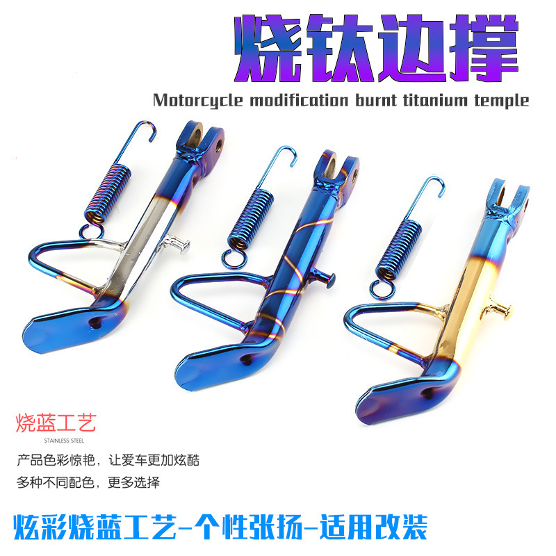 オートバイ改造アクセサリー、カラフルなサイドサポート、ユニバーサルバーニングチタンサイドサポート、電気自動車バーニングチタンサイドスタンド、スプリング付き