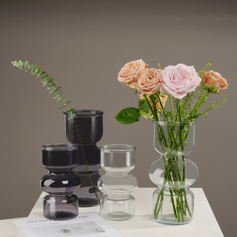 侘寂风花瓶中古水培植物玻璃瓶桌面透明插花瓶节节高玻璃罐批发
