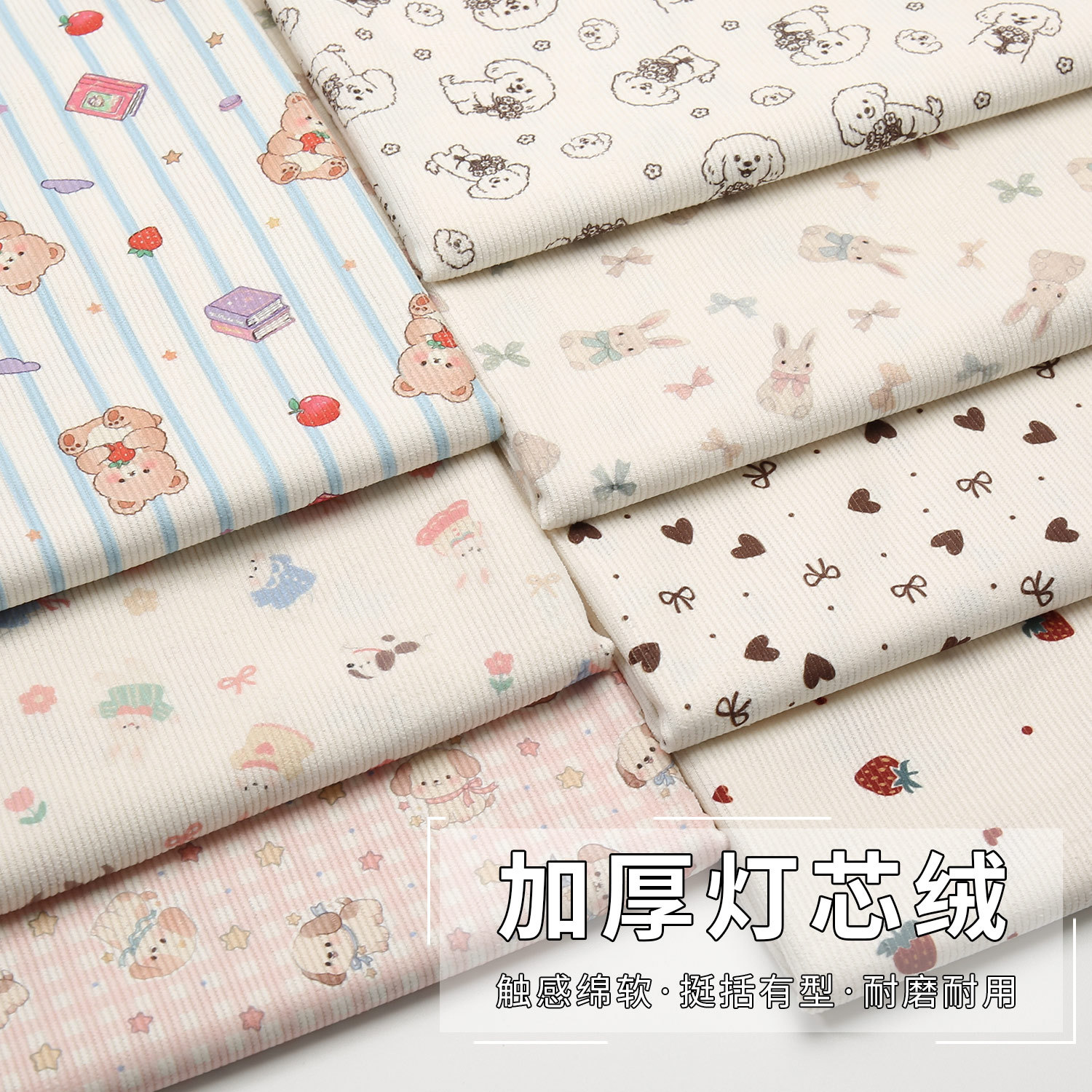 碎花灯芯绒布料秋冬加厚印花条绒宝宝棉袄童装连衣裙手工diy面料