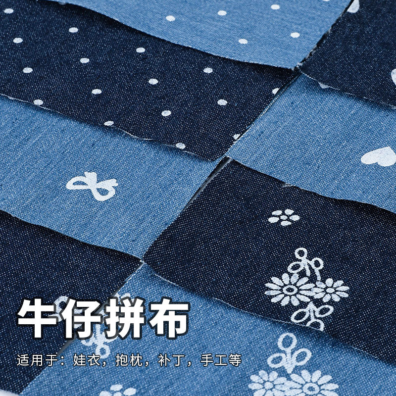 牛仔拼布料学生布艺手工DIY作业改造印花牛仔设计师面料小块布头