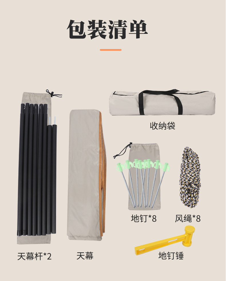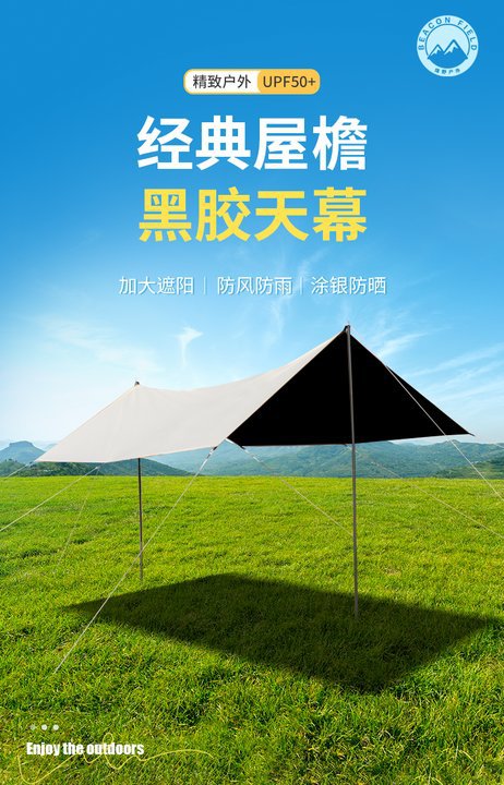 黑胶天幕户外野营便携天幕露营遮阳凉棚户外天幕帐篷防晒防紫外线