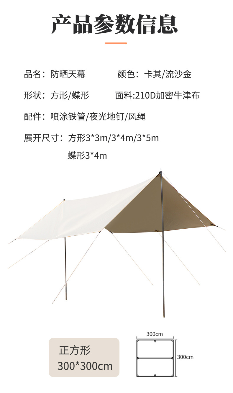 屋外キャンプサンシェード防水ビニールキャノピー肥厚日焼け止めコーティングキャンプ防雨大型キャノピーメーカー卸売