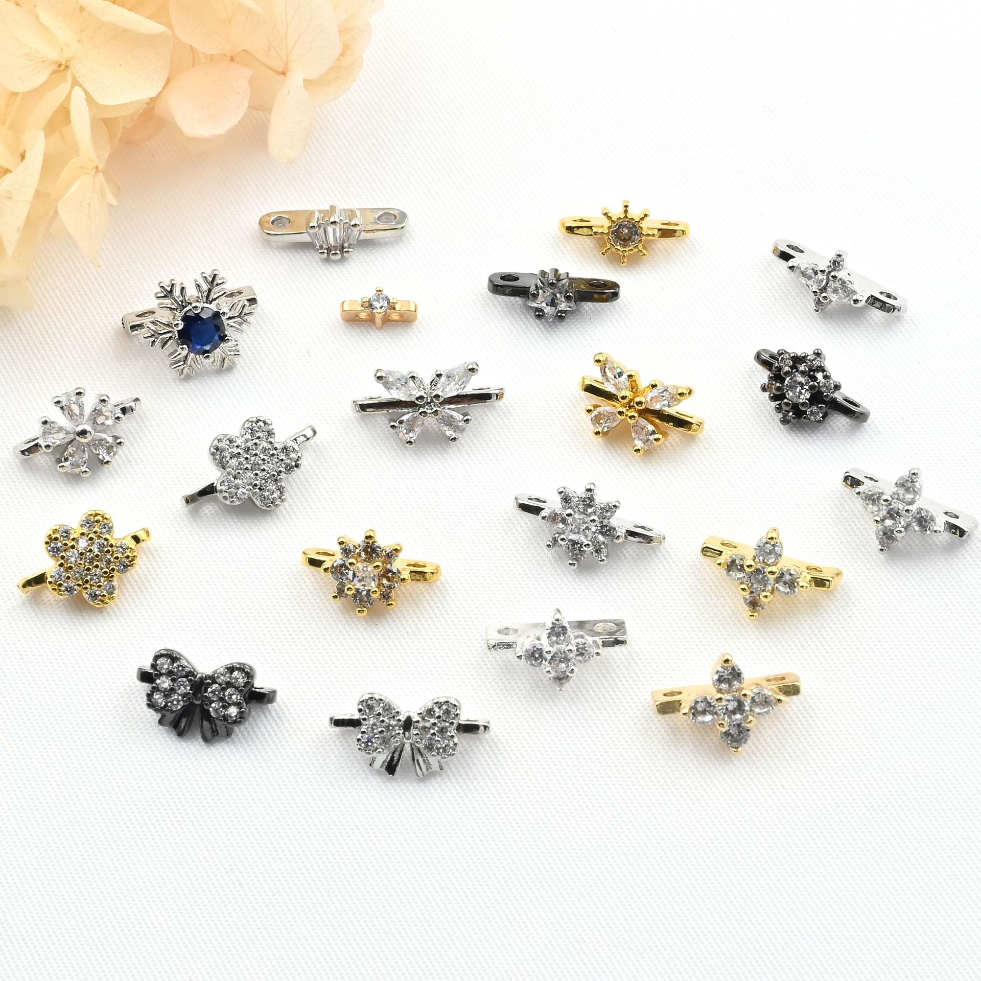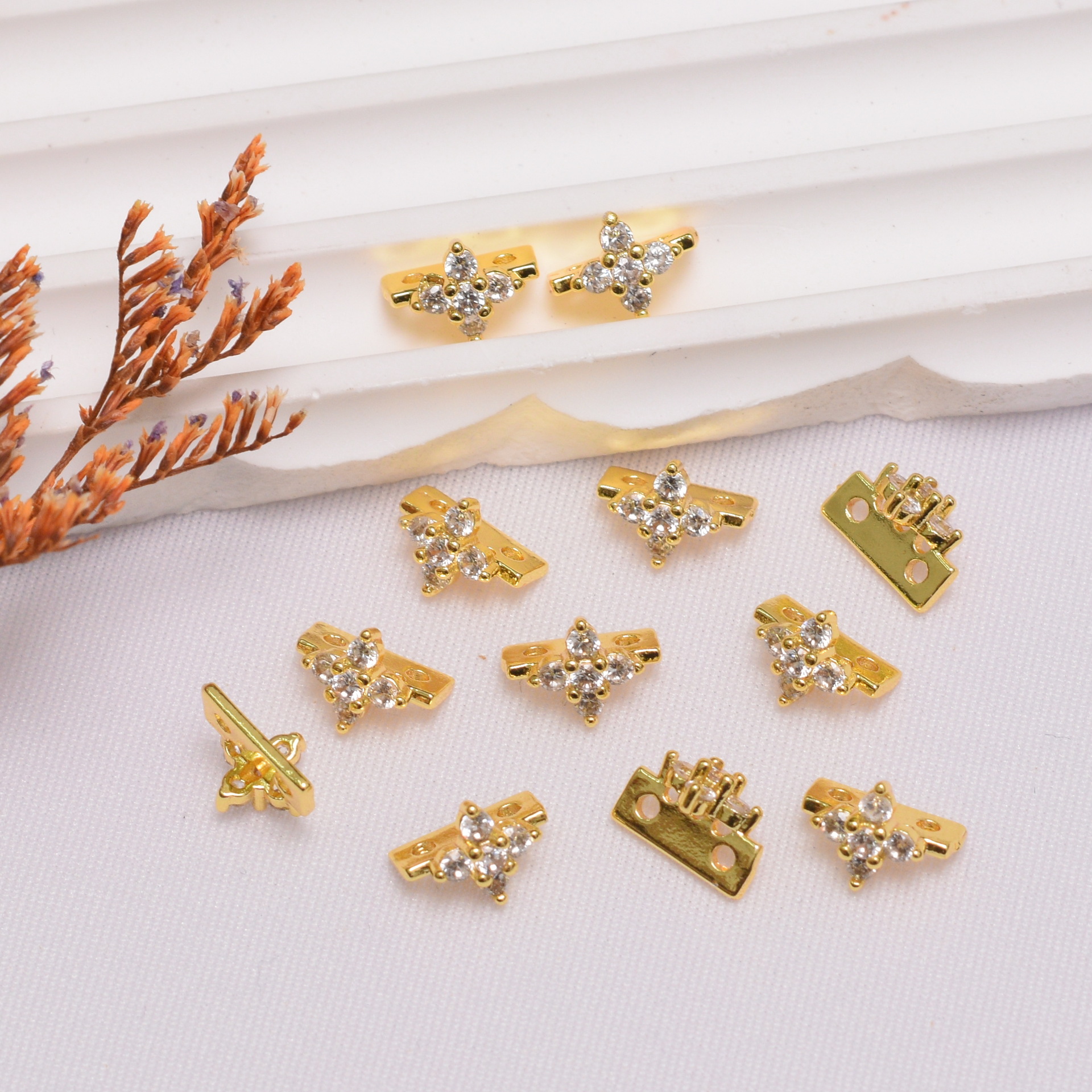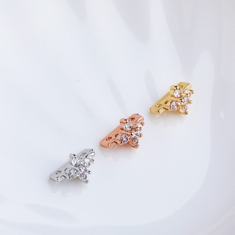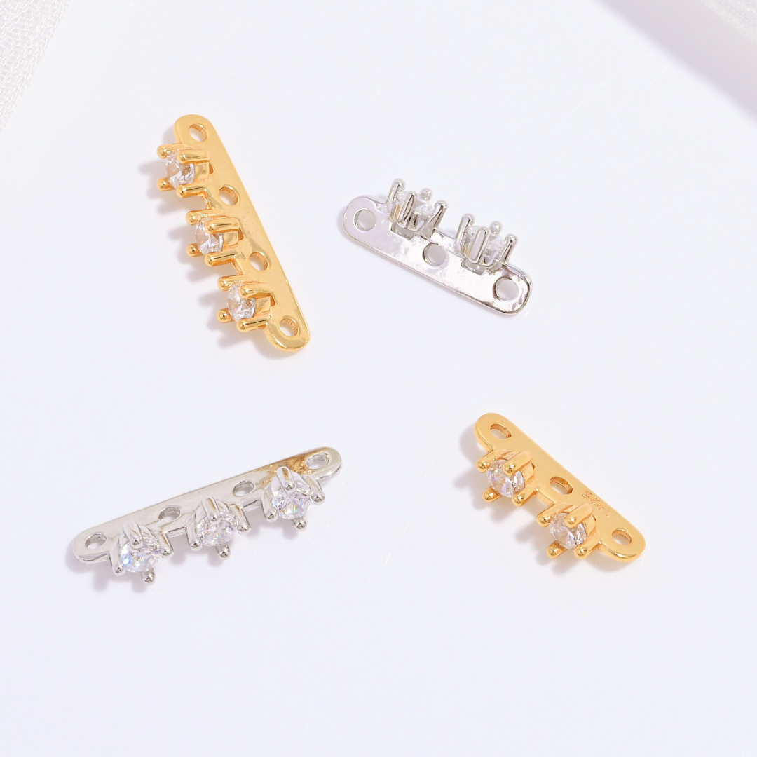 质量:环保,保色效果好 18K包金双三孔穿珍珠隔片铜镶锆石 半成品耳饰配件diy批发