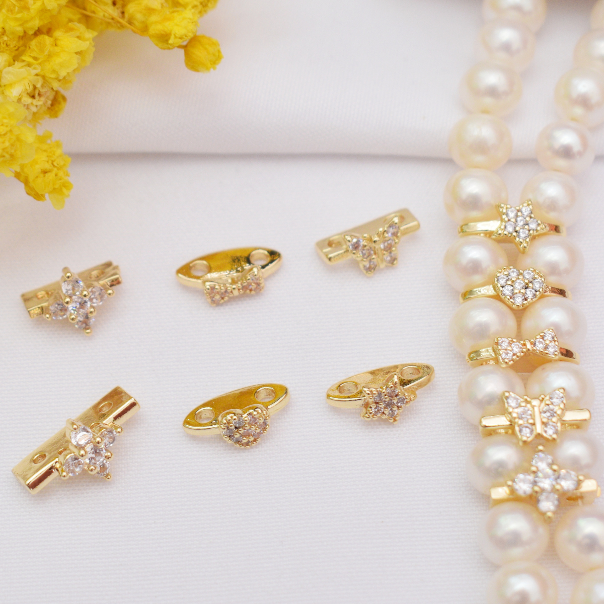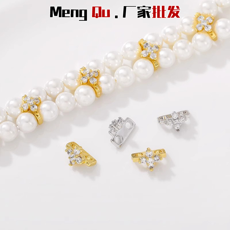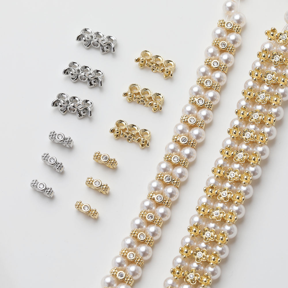 产品名称:双三孔穿珍珠隔片铜镶锆石