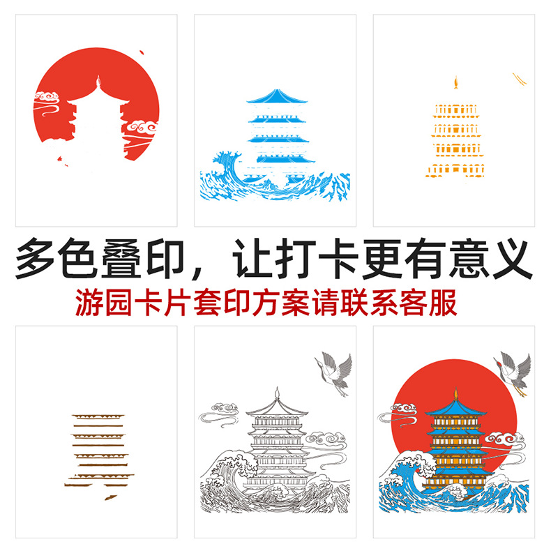 観光地区の多色の色のカードの印鑑のランドマークは色のスタンプを畳んで印刷して来ます。
