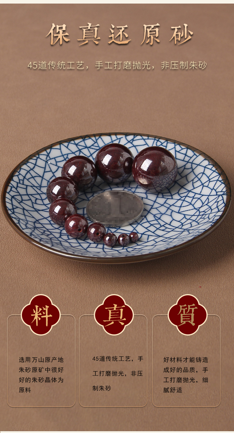 高純度原鉱朱砂手串還元砂磨き技術朱砂ブレスレット卸売り男女金ゴム非プレス