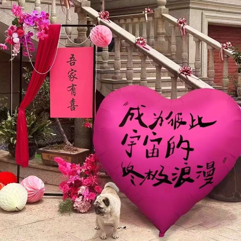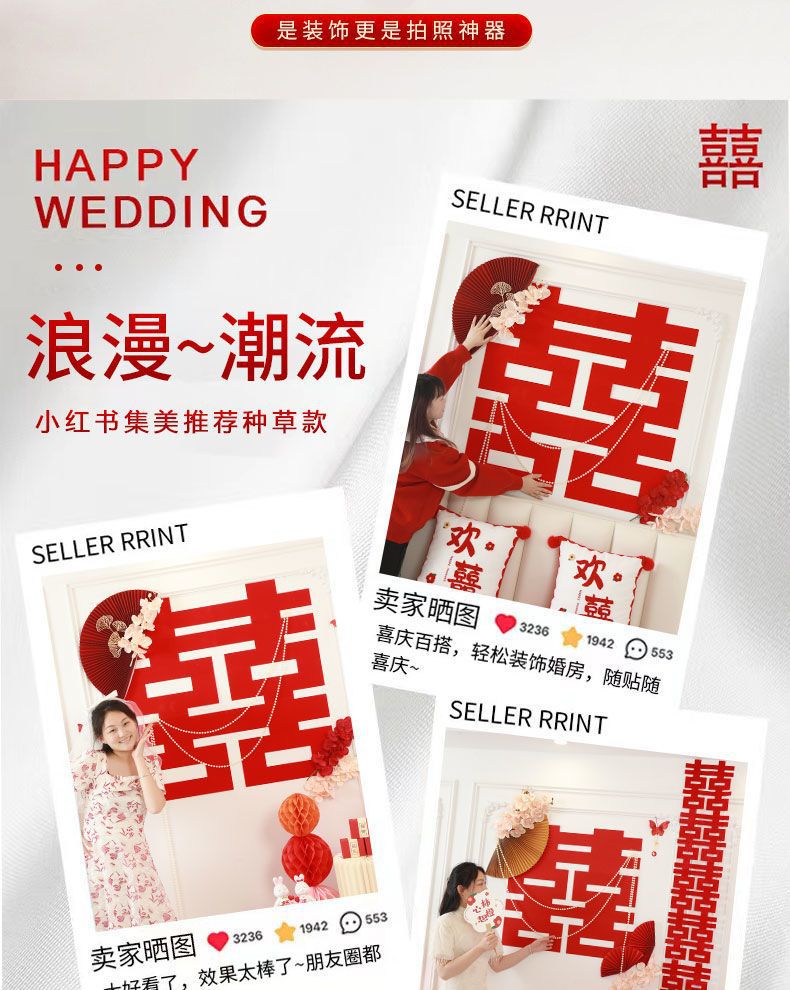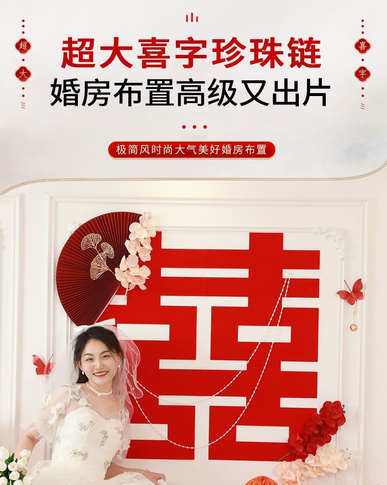 ウェディングルームの装飾リビングルームの喜字の装飾の背景の壁の結婚写真の新しい部屋のins風のウェディングドレスの装飾