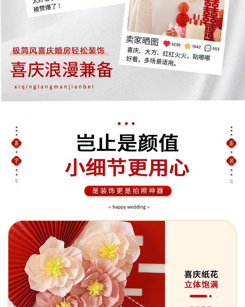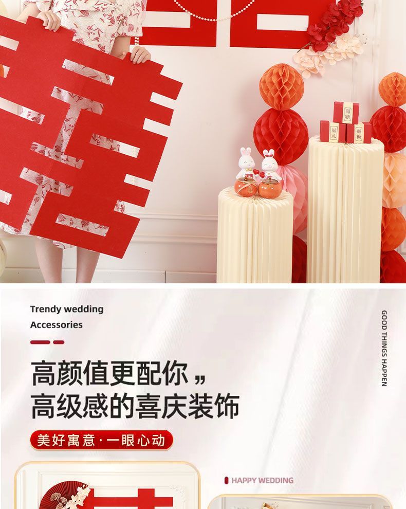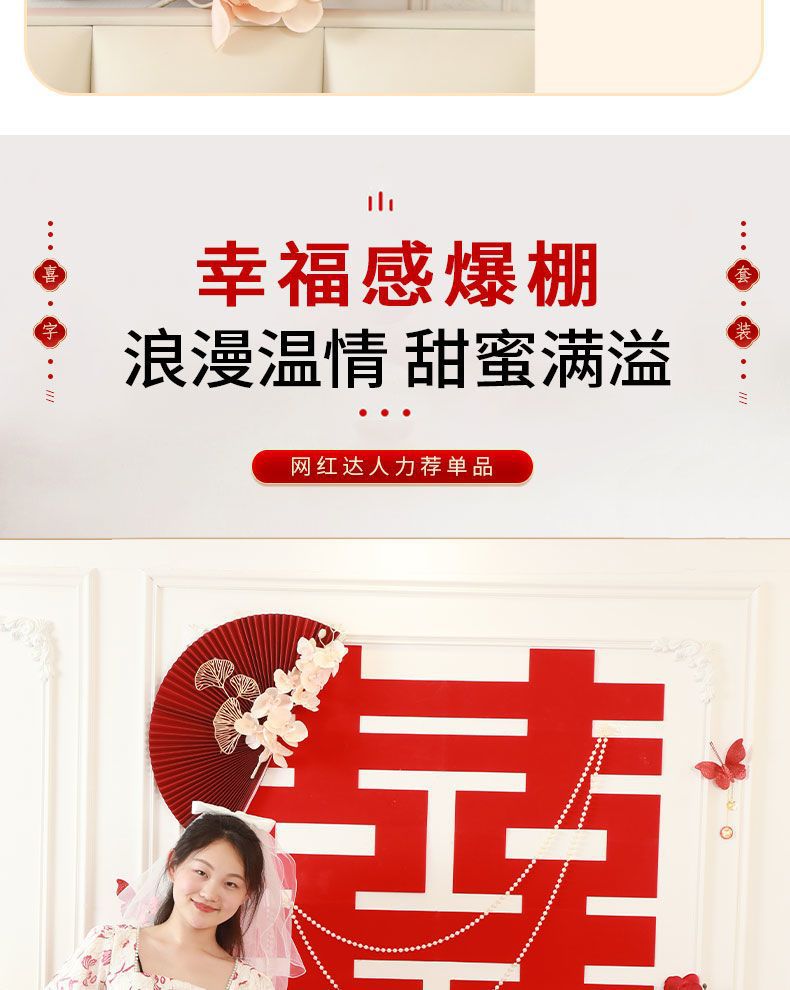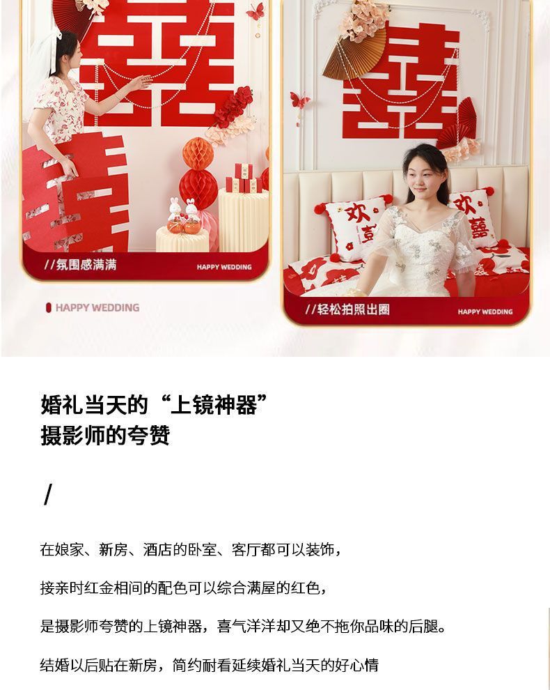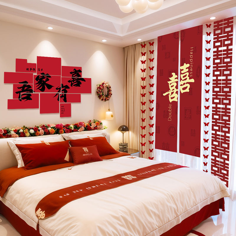 客厅沙发背景墙婚房布置套装喜字婚礼装饰男女方结婚装饰卧室床头