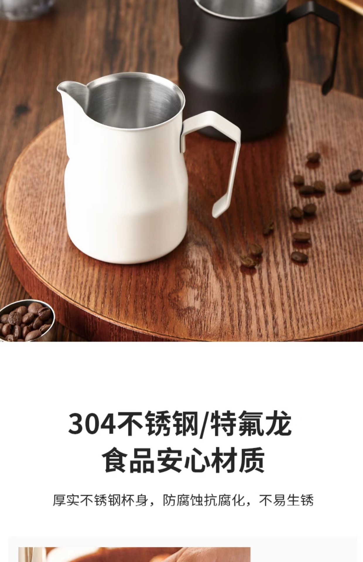 304ステンレス製ラテアートカップ、厚みのあるラテアートタンク、目盛り付き、白色テフロン製ミルク泡立てカップ、花型