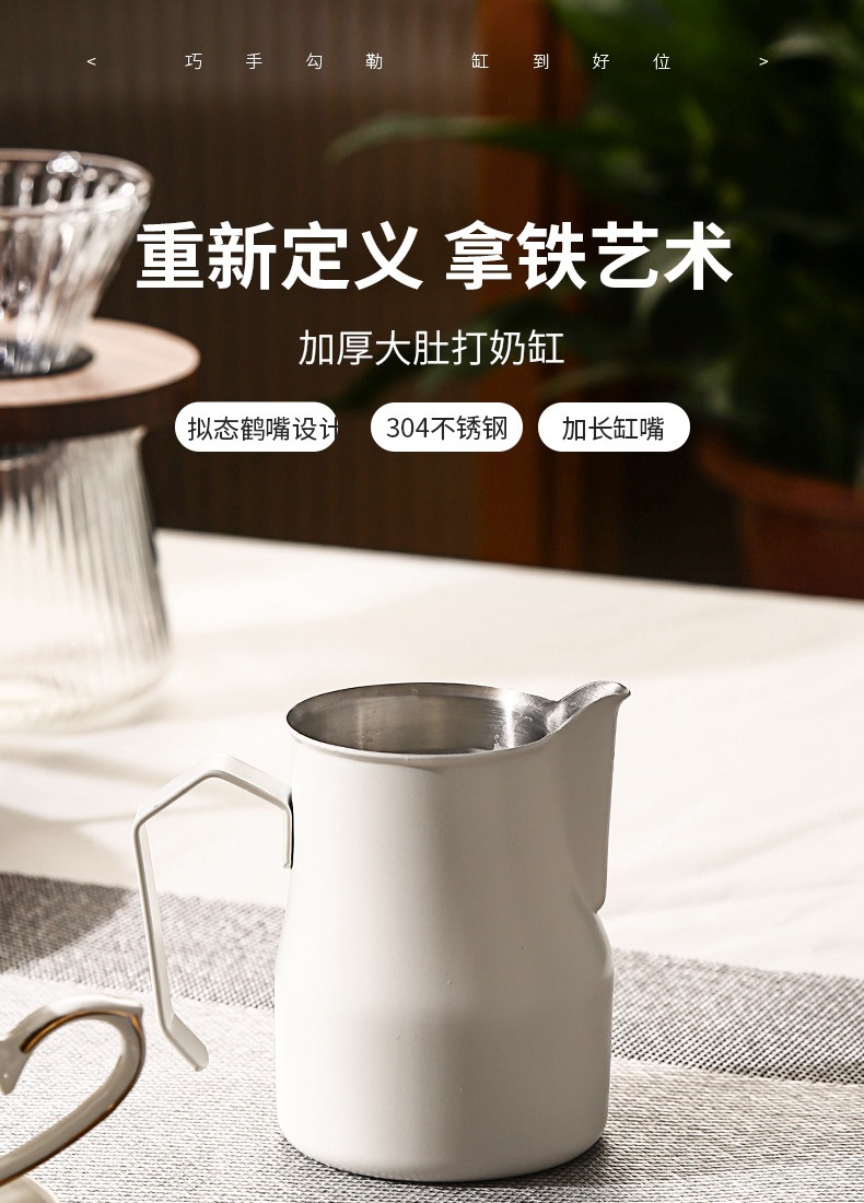 304ステンレスのエスプレッソの花を引くコップの尖った口の花を引くかめのミルクの泡の花を引くコップの牛乳の杯のコーヒーの器具