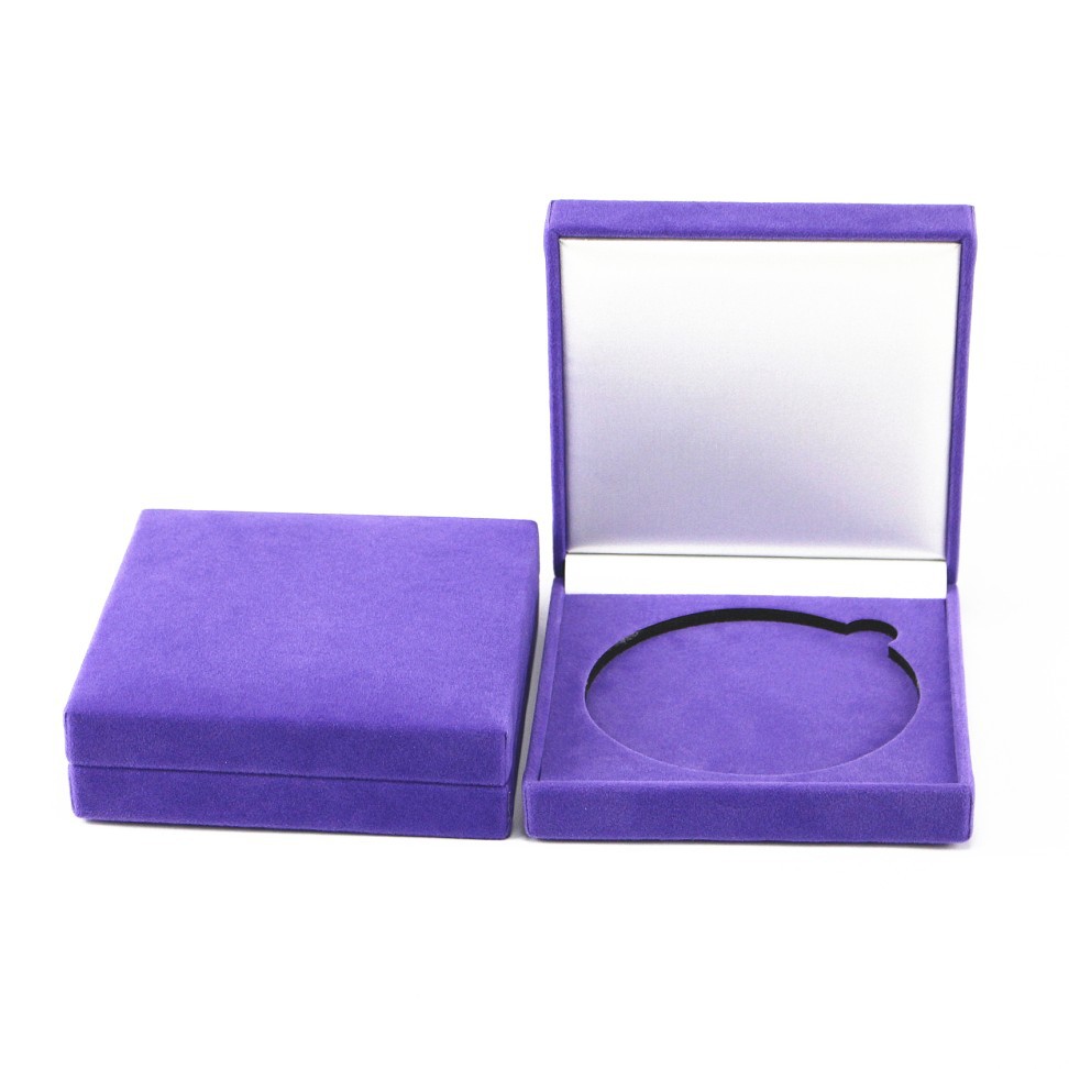 材质:塑胶胶胚外包优质绒布,内衬做绒布EVA凹槽放客户大尺寸戒指。盒子的外包料颜色有多可以选择。